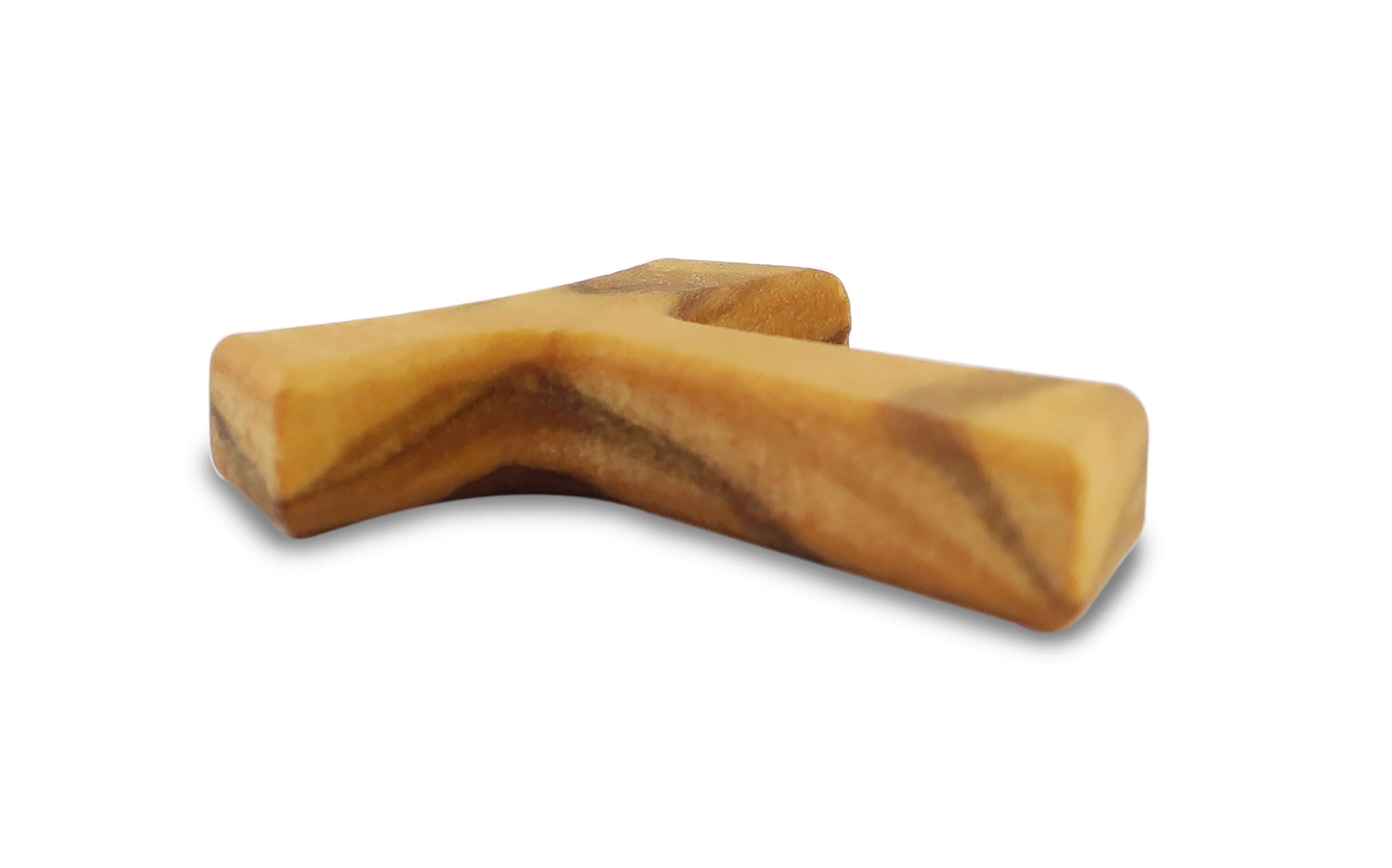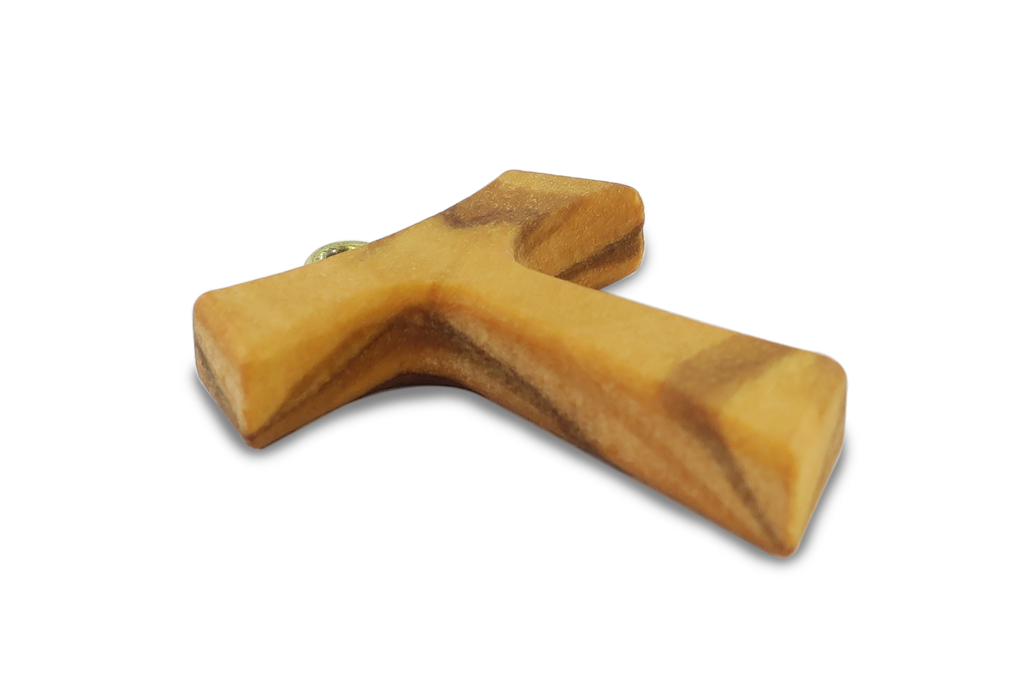 La croce Tau di S. Francesco d'Assisi, venduta in una confezione da 50 pezzi, è realizzata in legno d'ulivo con bordi smussati. Presenta le naturali striature del legno, che le conferiscono un aspetto semplice e naturale. Il cordoncino in stoffa marrone scuro con i tre famosi nodi francescani, simbolo delle tre regole Povertà, Castità e Obbedienza, è legato alla croce Tau tramite un gancetto, in modo tale che possiate indossare il prodotto comodamente al collo. Prodotto realizzato in Italia. Dimensioni della croce: 4 cm (altezza), 3,4 cm (larghezza), 0,7 cm (profondità). Lunghezza del cordino: 76 cm. Peso della confezione (da 50 pezzi): 190 gr.