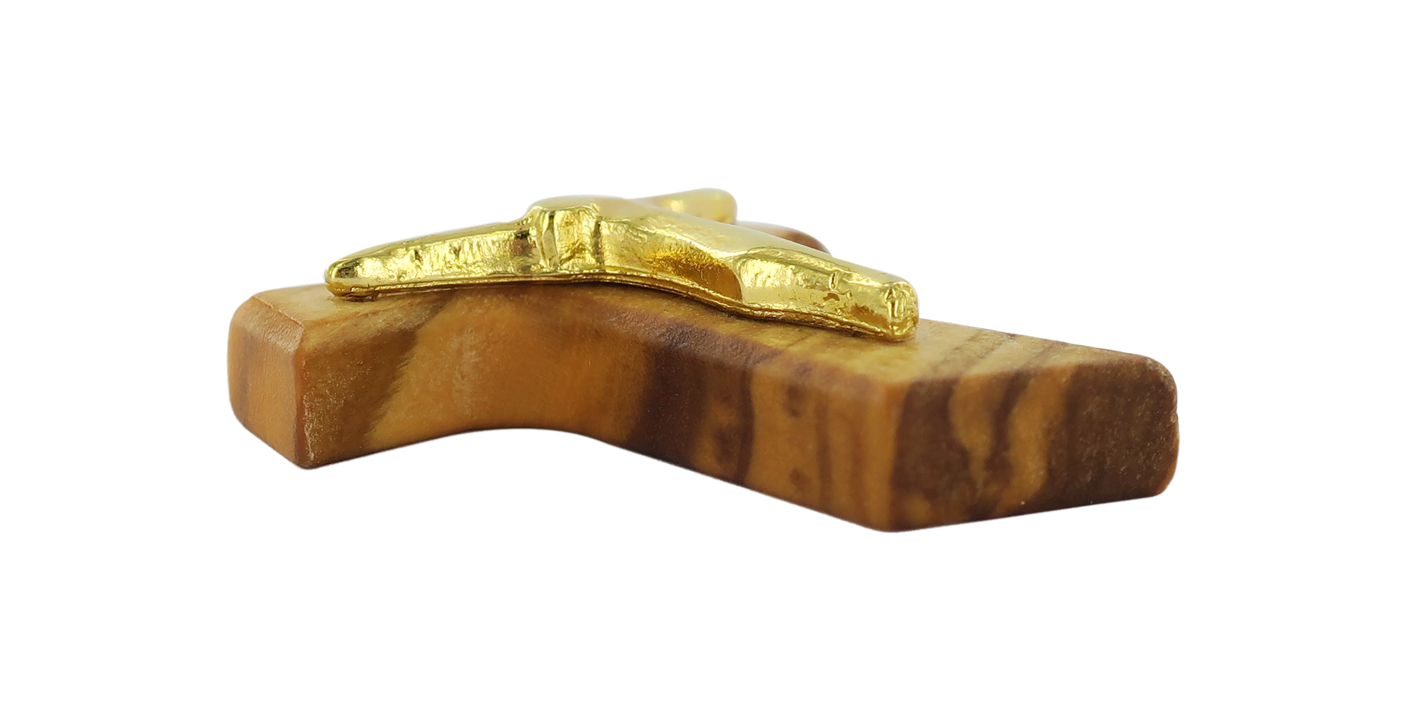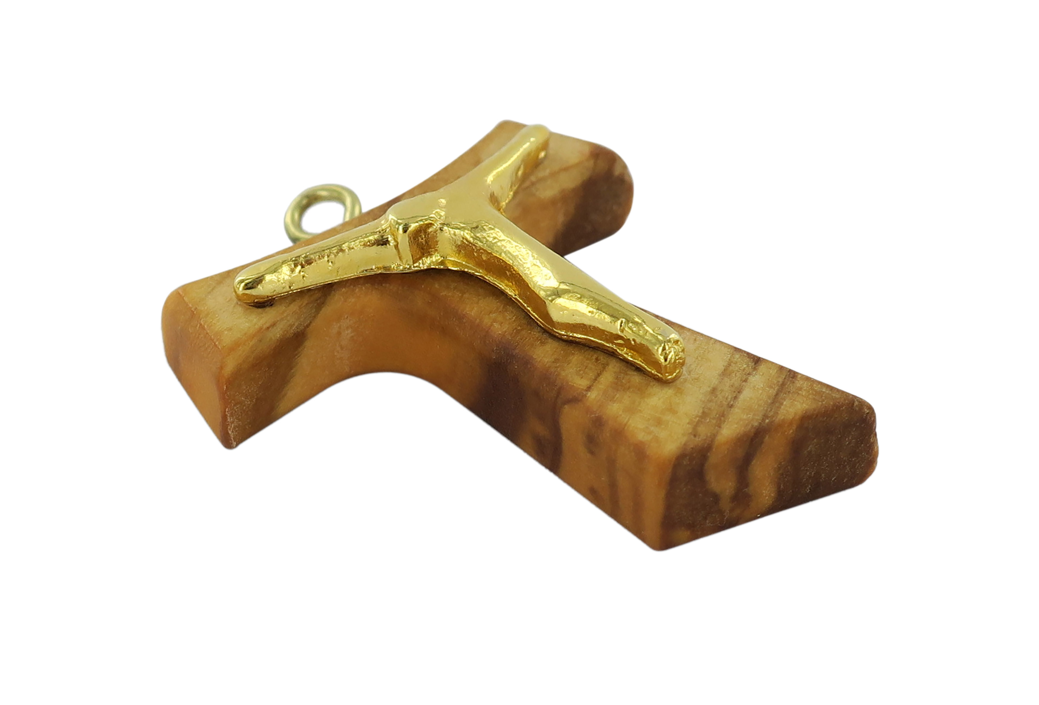 Tau in legno di ulivo con Cristo in metallo (croce di San Francesco d'Assisi) - 5 cm