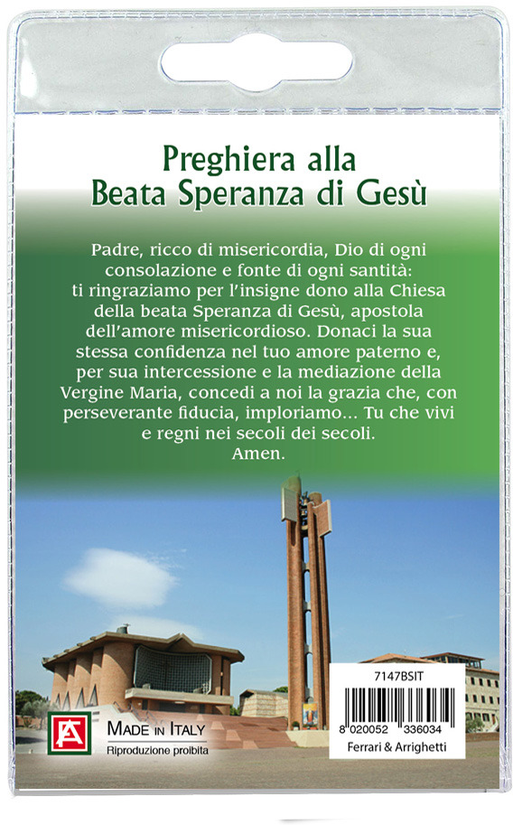 Il blister si presenta con all'interno un cartoncino, rappresentante Beata Speranza di Gesù.