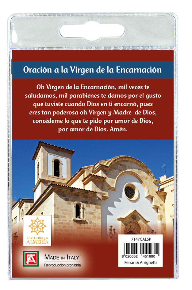 Il blister si presenta con all'interno un cartoncino rappresentante la Catedral de Almeria con una preghiera a lei dedicata (in SPAGNOLO).