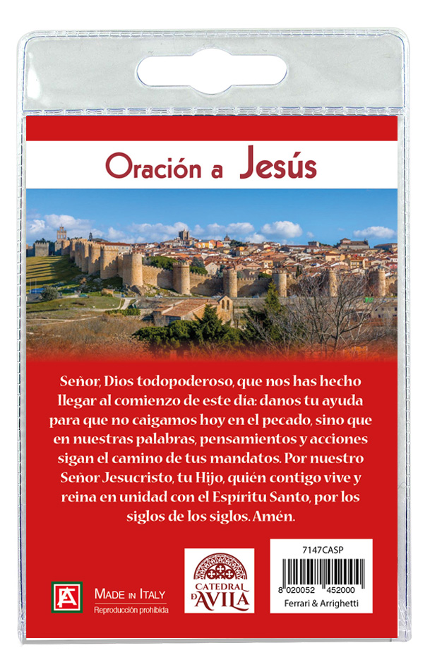 Il blister si presenta con all'interno un cartoncino rappresentante la Catedral de Avila con una preghiera a lei dedicata (in SPAGNOLO).