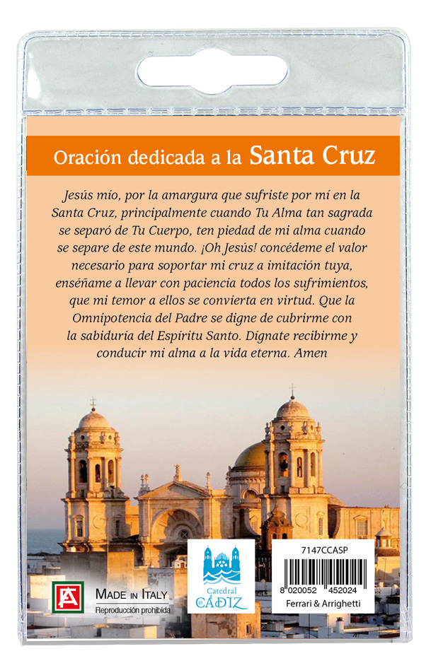 Il blister si presenta con all'interno un cartoncino rappresentante la Catedral de Cadiz con una preghiera a lei dedicata (in SPAGNOLO).