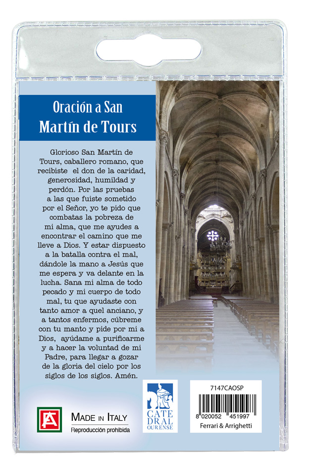 Il blister si presenta con all'interno un cartoncino rappresentante la Catedral de Ourense con una preghiera a lei dedicata (in SPAGNOLO).