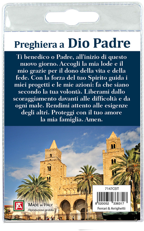 Sul retro del cartoncino vi è stampata l'immagine della cattedrale di Cefalù.