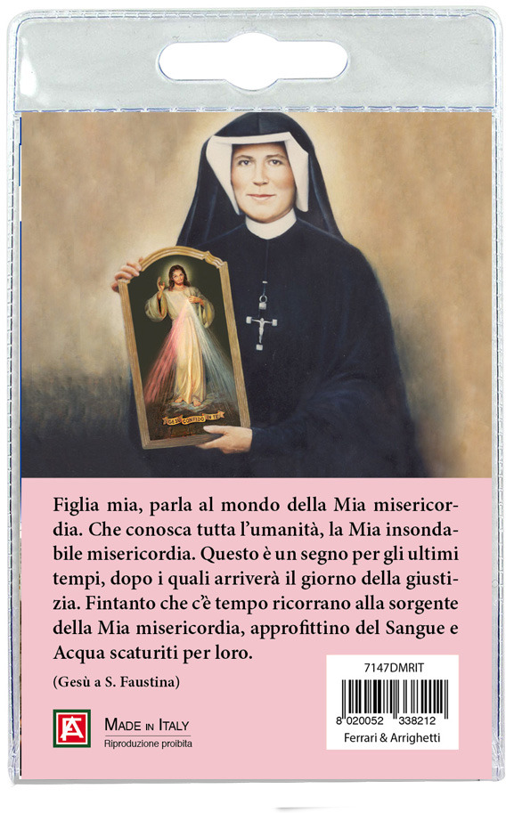 Sul retro del cartoncino vi è stampata l'immagine della Divina Misericordia