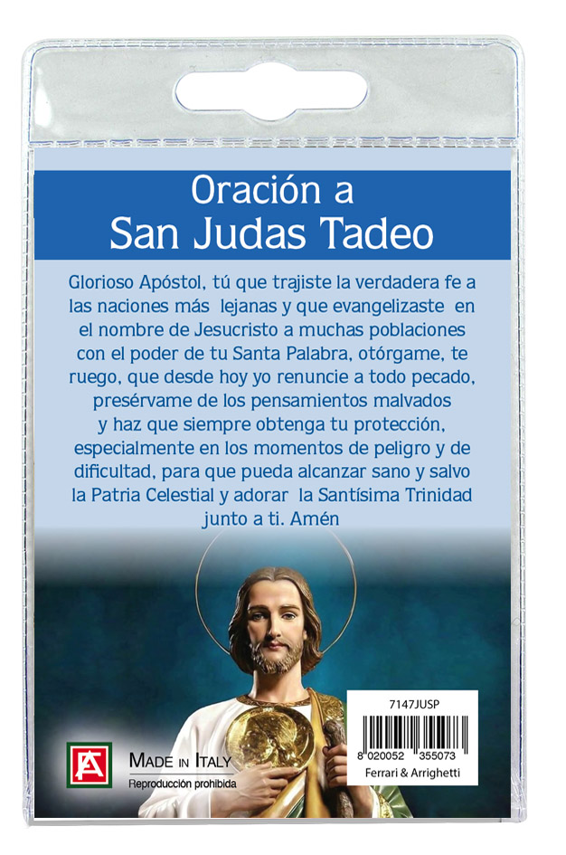 Il blister si presenta con all'interno un cartoncino, rappresentante San Giuda Taddeo.