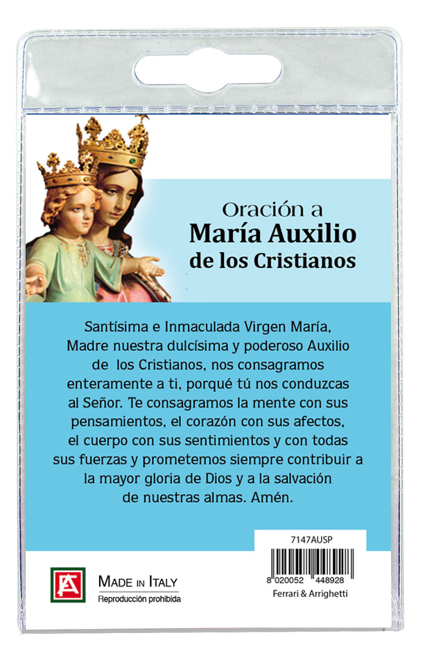 Portachiavi Madonna Ausiliatrice con preghiera in spagnolo