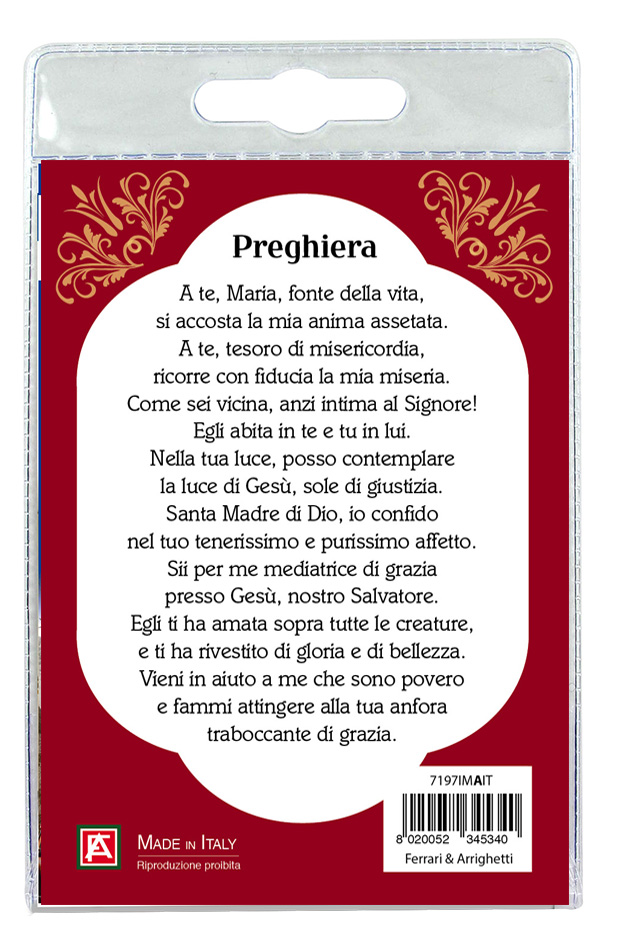 Sul retro del cartoncino vi è stampata una preghiera a lei dedicata.