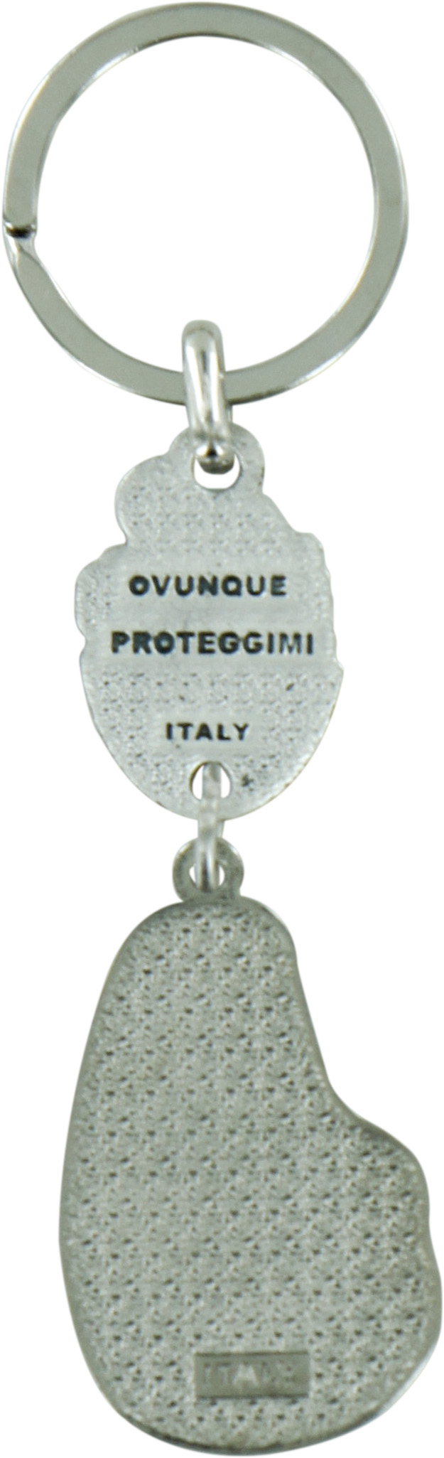 Portachiavi sagomato San Cristoforo in metallo con Madonna di Lourdes