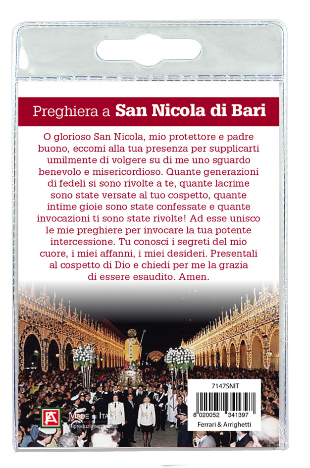 Il blister si presenta con all'interno un cartoncino, rappresentante San Nicola di Bari.