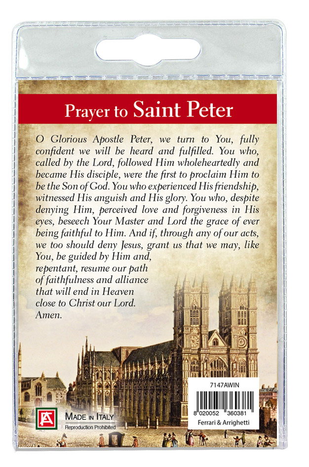 Sul retro del cartoncino vi è stampata una preghiera dedicata a San Pietro.