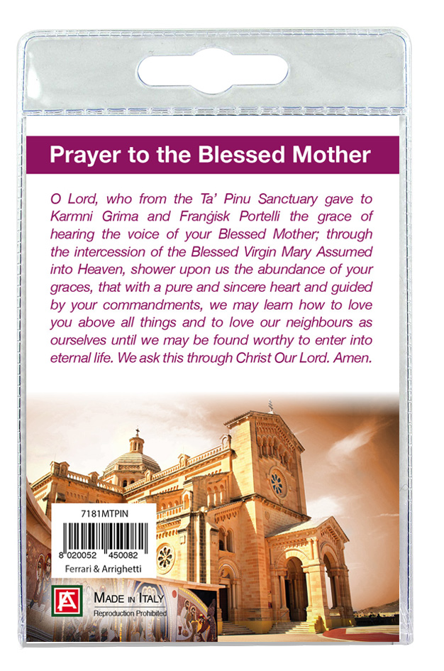 Portachiavi angelo Madonna di Ta' Pinu con preghiera in inglese