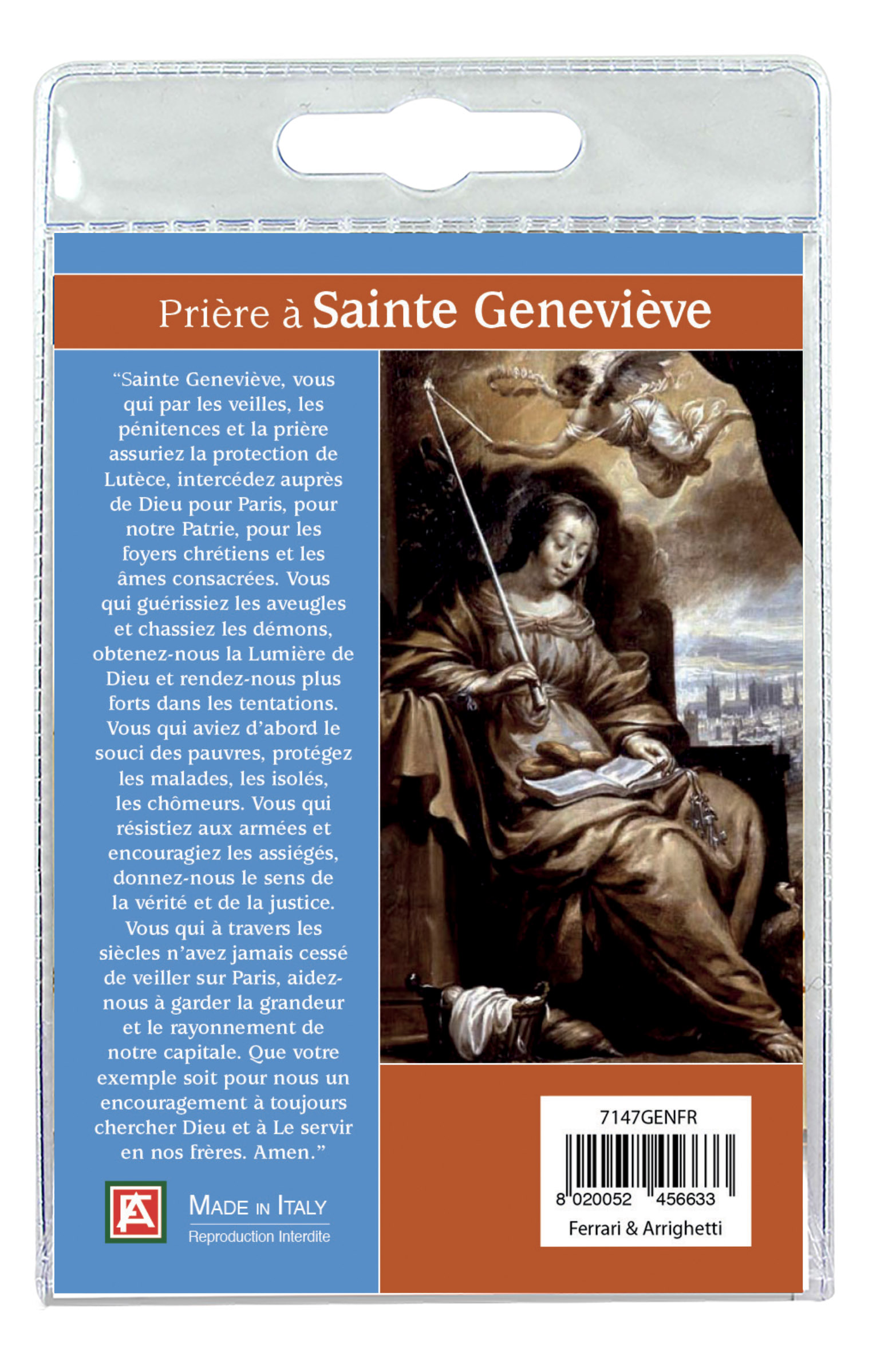 Il blister si presenta con all'interno un cartoncino, rappresentante Santa Genoveffa.