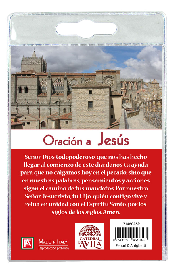 Il Portachiavi è confezionato in un blister con all'interno un immagine della Basilica sul cui retro e' stampata una preghiera in spagnolo.