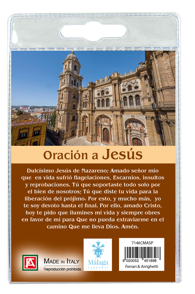 Portachiavi Catedral de Malaga con decina in ulivo e preghiera in spagnolo