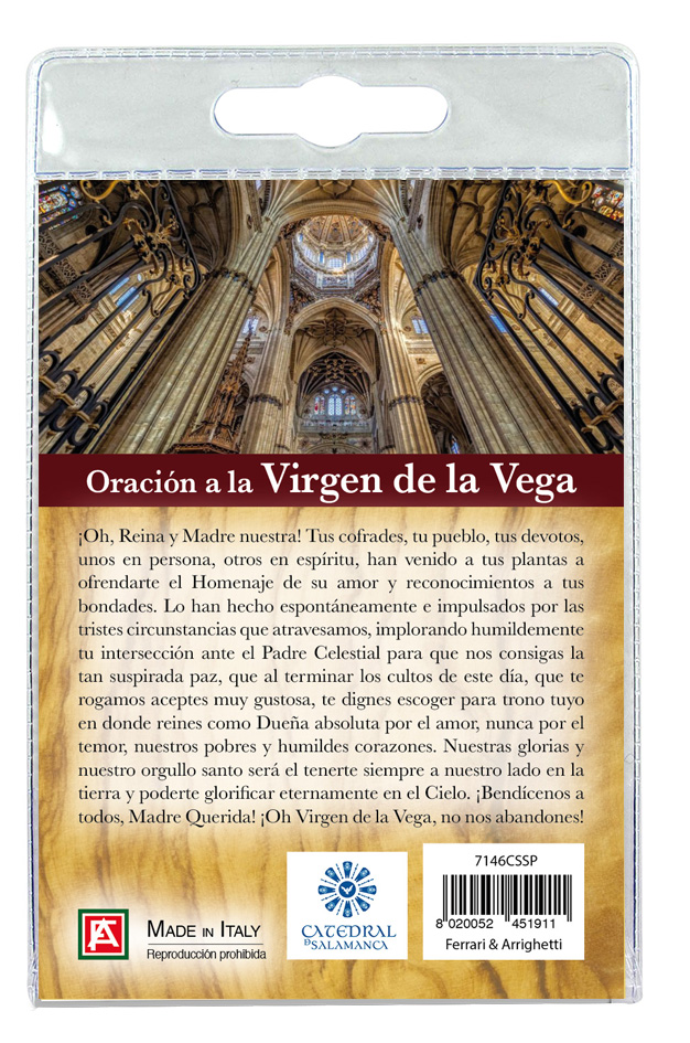Il Portachiavi è confezionato in un blister con all'interno un immagine della Basilica sul cui retro e' stampata una preghiera in spagnolo.