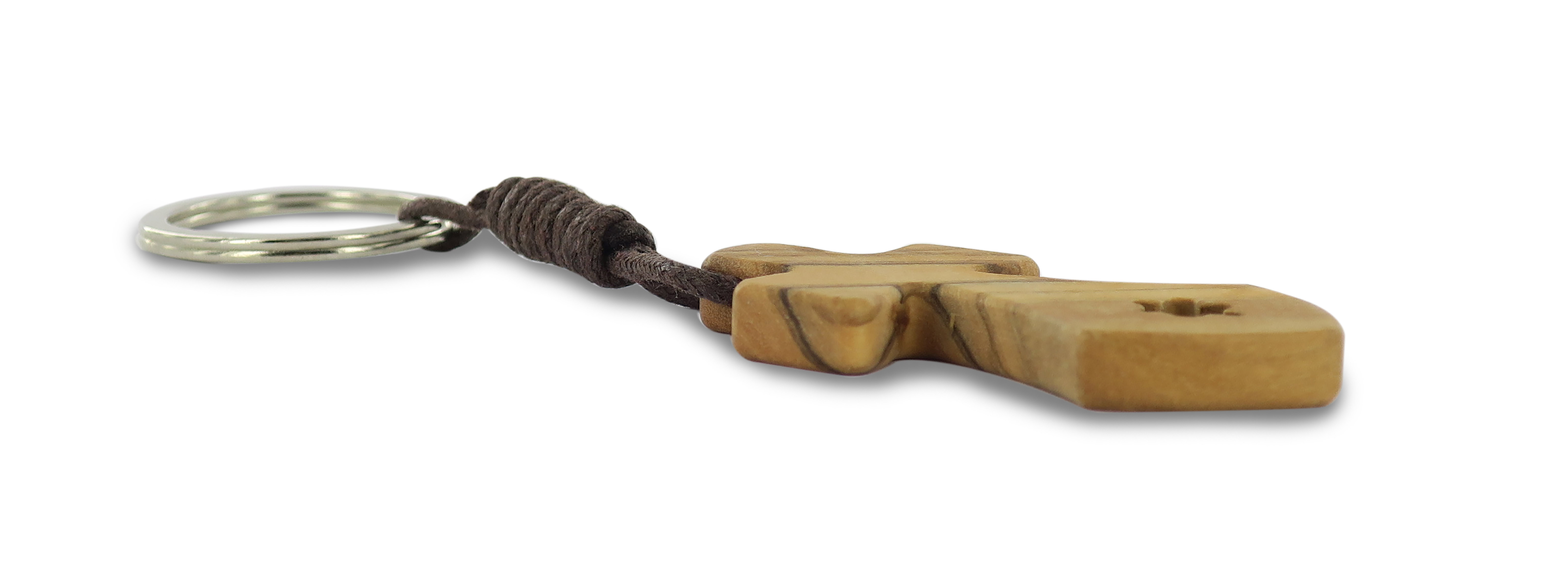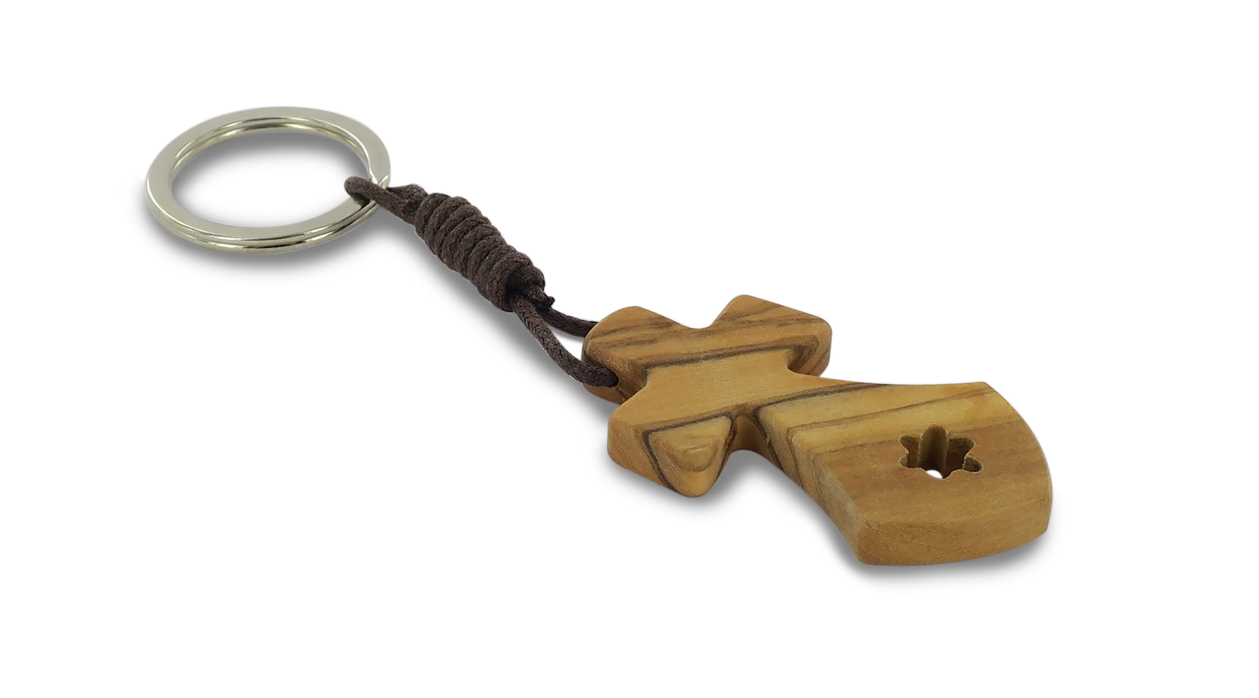 Portachiavi con la croce carmelitana in legno d'ulivo.