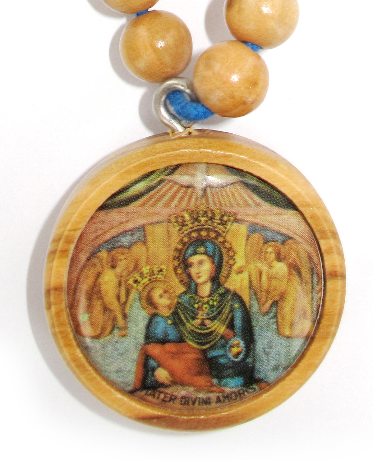 Portachiavi Madonna del Divino Amore con decina e medaglia in ulivo