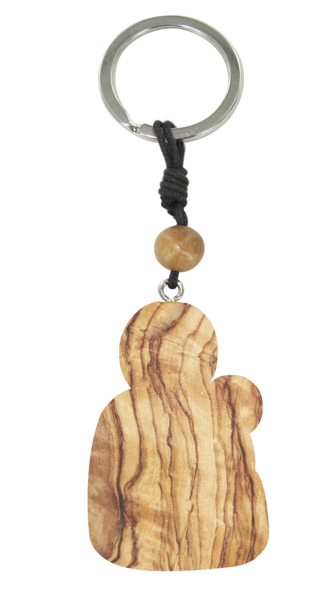 Portachiavi Madonna del Divino Amore in ulivo con grano e immagine serigrafata