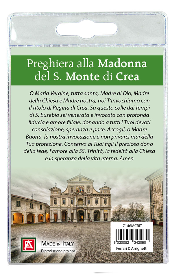 Il Portachiavi è confezionato in un blister con all'interno un immagine della Madonna sul cui retro è stampata una preghieraa lei dedicata.