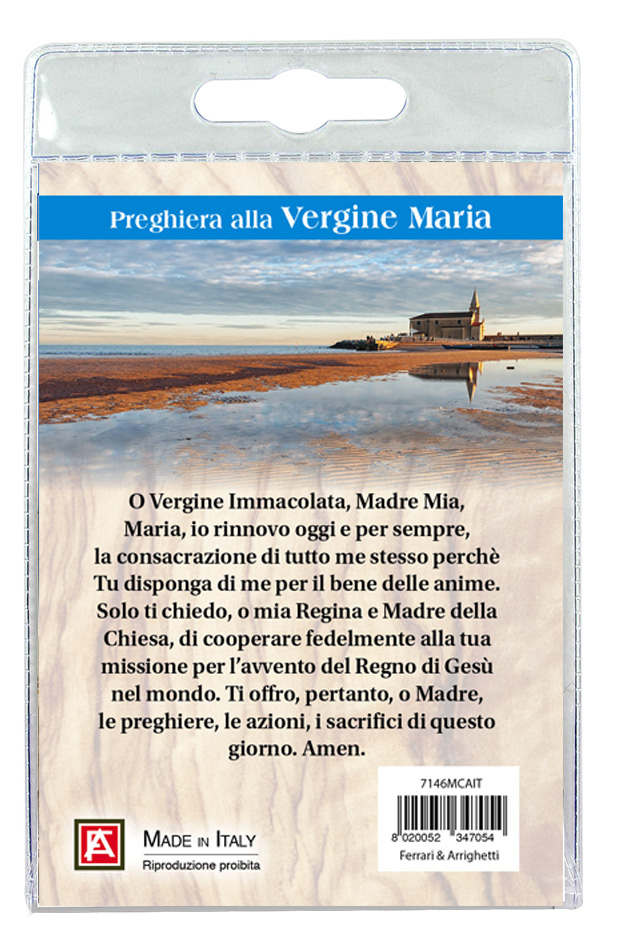 Il Portachiavi è confezionato in un blister con all'interno un immagine del santuario sul cui retro e' stampata una preghiera dedicata alla Vergine Maria.