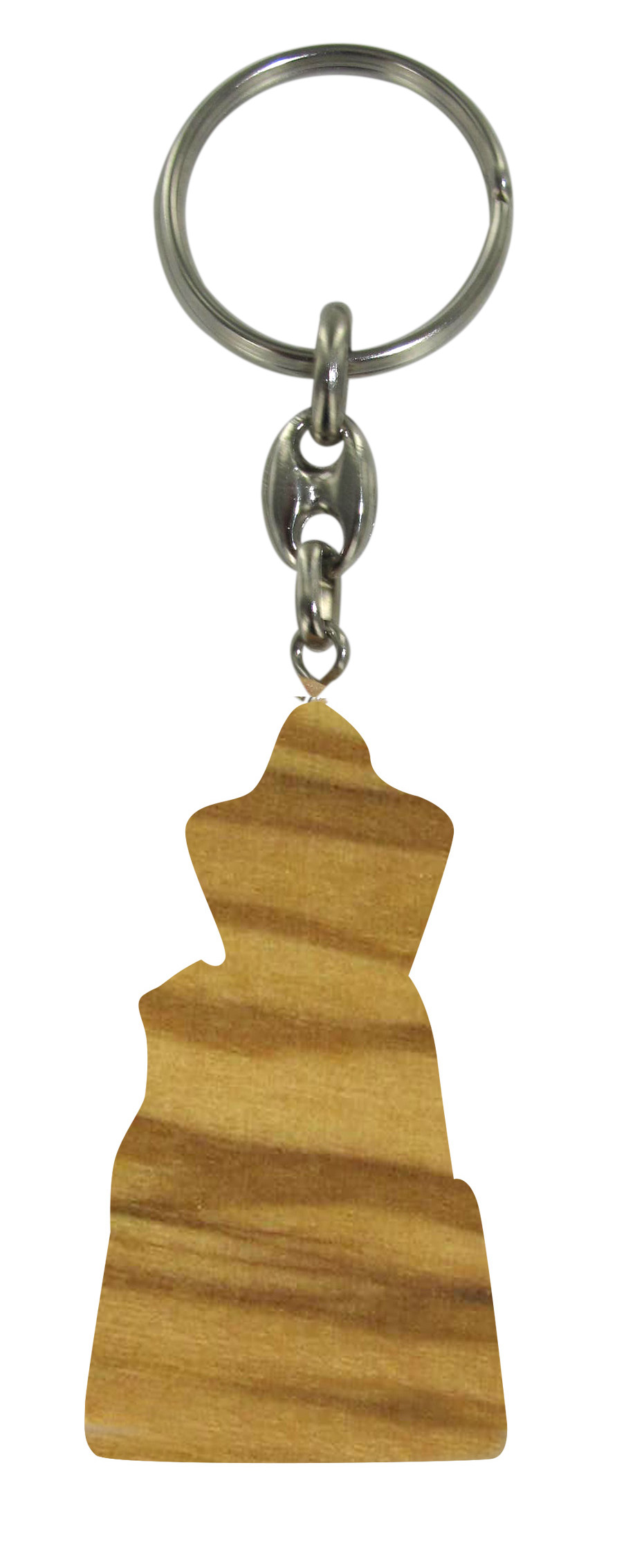 Portachiavi sagomato in legno d'ulivo con l'immagine serigrafata della Madonna di Loreto.