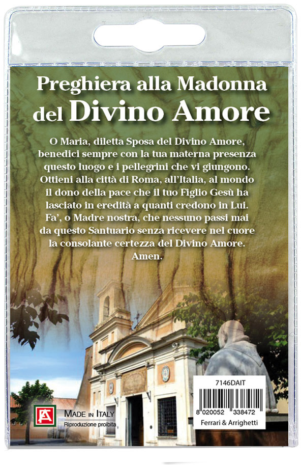 Il Portachiavi è confezionato in un blister con all'interno un immagine della Madonna sul cui retro e' stampata una preghiera.