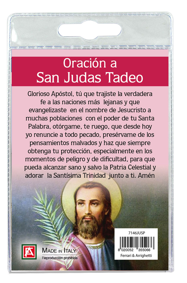 Il portachiave è confezionato in un blister con all'interno un immagine del santuario sul cui retro è stampata una preghiera, in spagnolo, dedicata al San Giuda Taddeo.