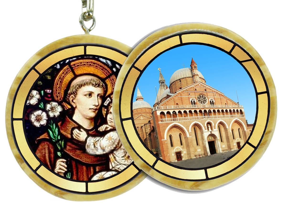Il Portachiavi è costituito da un medaglione tondo in ulivo con da un lato l'immagine serigrafata di Sant'Antonio di Padova e dall'altro quella della cattedrale di Sant'Antonio a Padova.