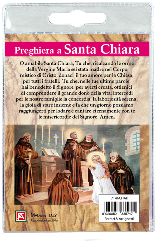 Portachiavi Santa Chiara con decina in ulivo e preghiera in italiano