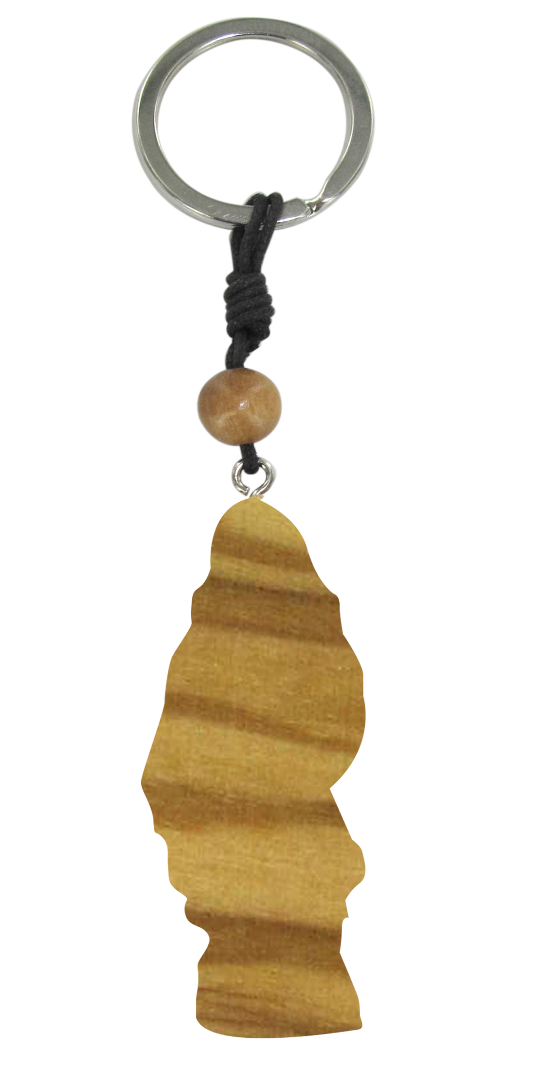 Portachiavi sagomato in legno d'ulivo con grano e con l'immagine serigrafata di Santa Chiara.
