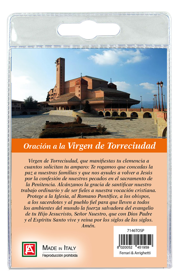 Il Portachiavi è confezionato in un blister con all'interno un immagine della Basilica sul cui retro e' stampata una preghiera in spagnolo.