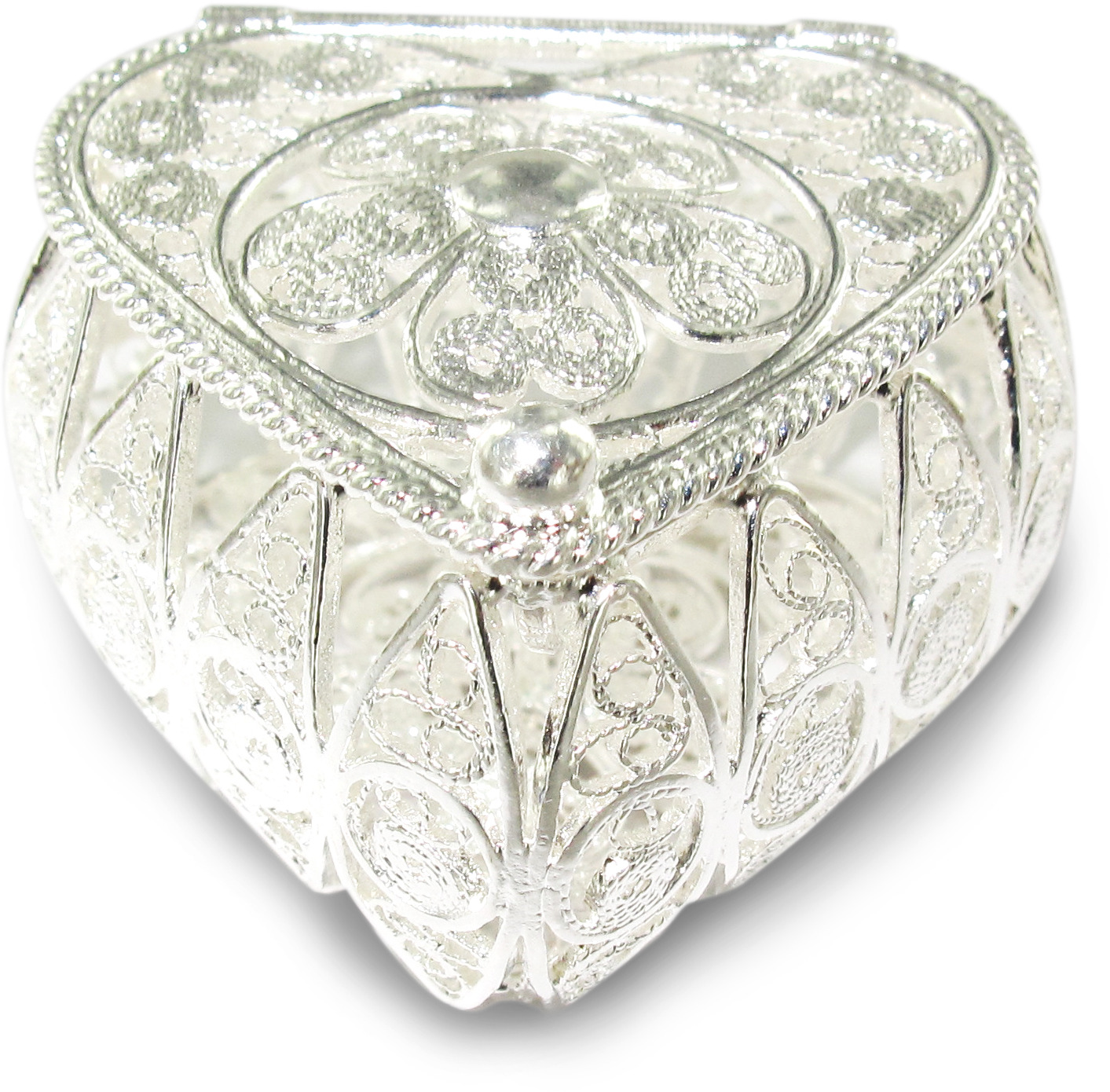 Scatolina a forma di cuore in filigrana e argento 925.