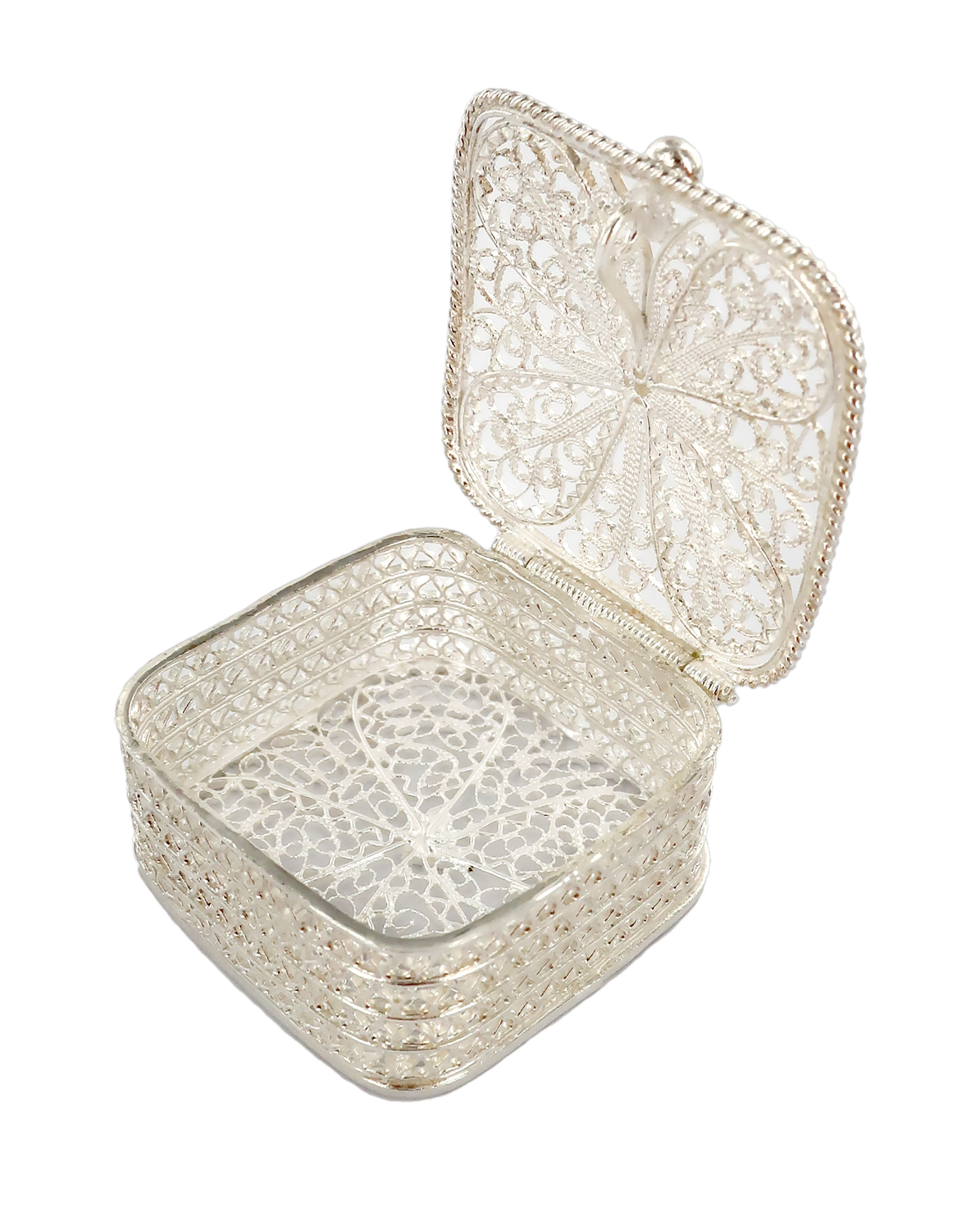 Scatolina a forma quadrata in filigrana d'argento 925.