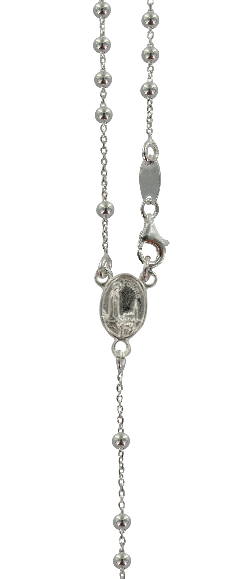 Rosario Fatima in argento 925 con grani da Ø 3 mm e preghiera in francese