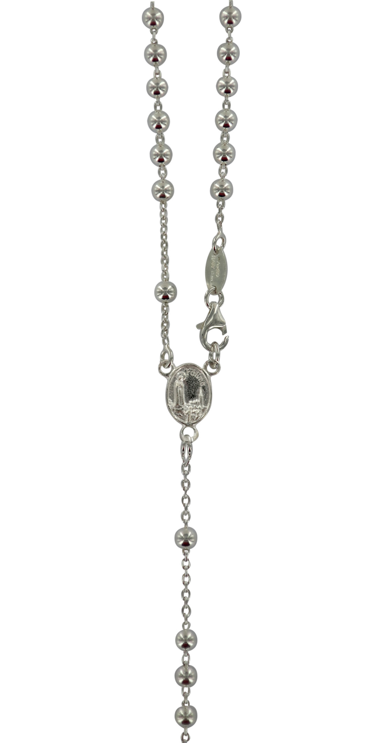Rosario Fatima in argento 925 con grani da Ø 4 mm e preghiera in spagnolo