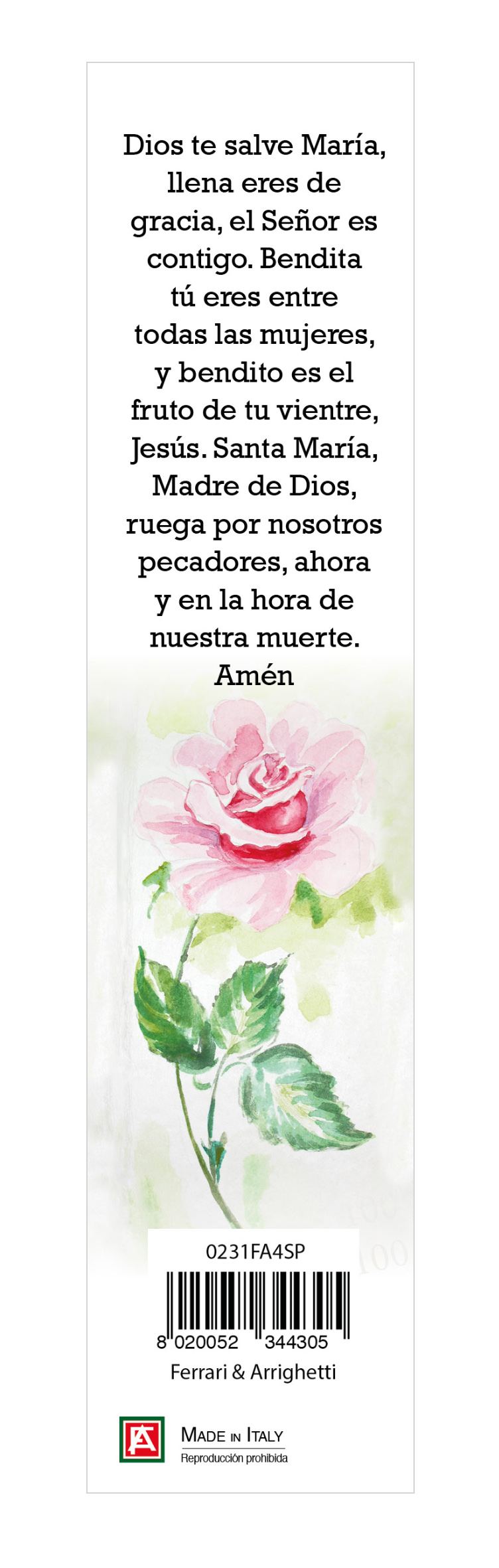 Il rosario è confezionato in un cartoncino con l'immagine della Madonna Fatima, sul retro vi è una preghiera scritta in spagnolo dedicata a lei (il tutto infilato in una busta trasparente).