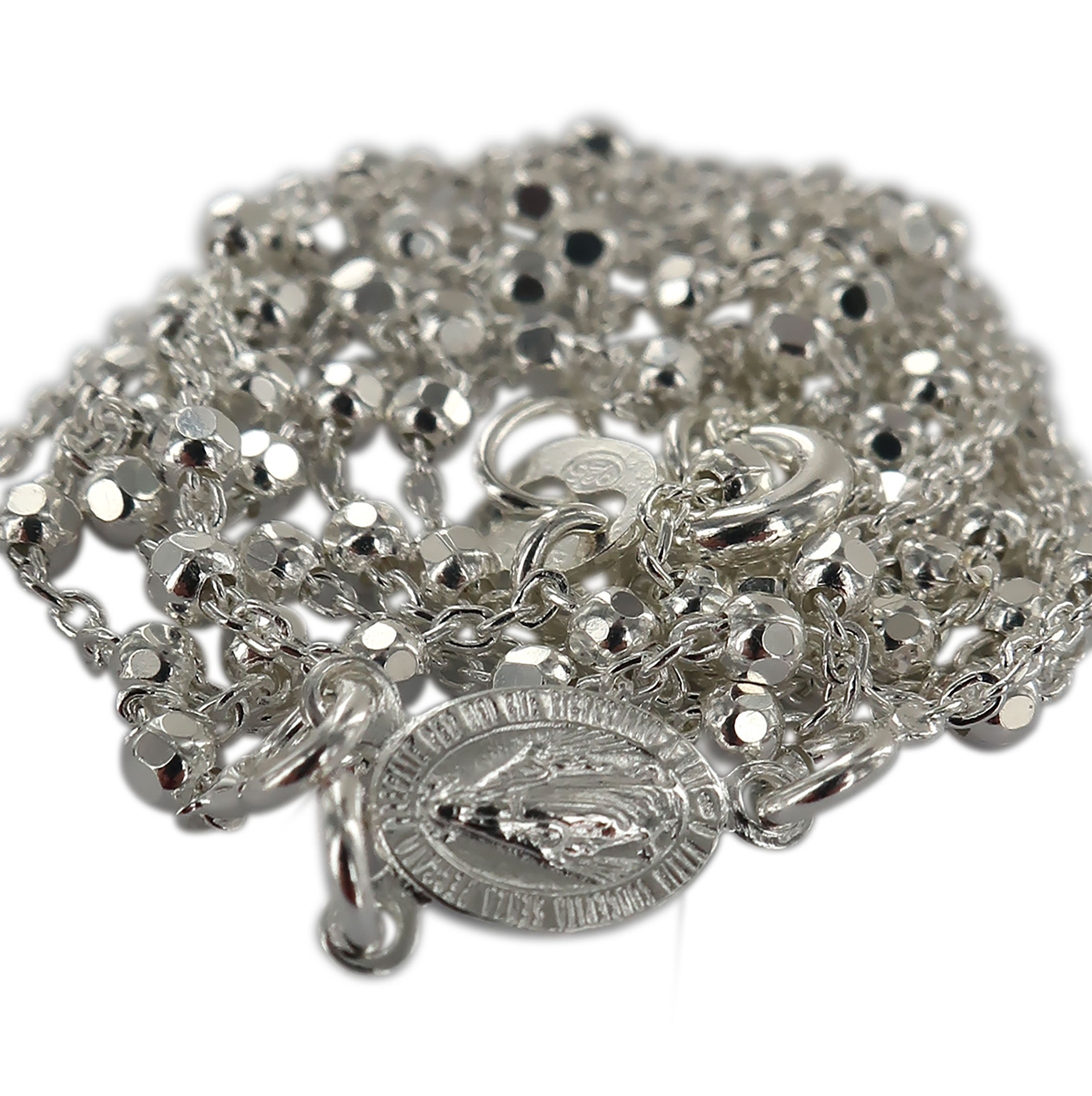 Rosario in argento 925 con grani sfaccettati da Ø 2 mm e moschettone
