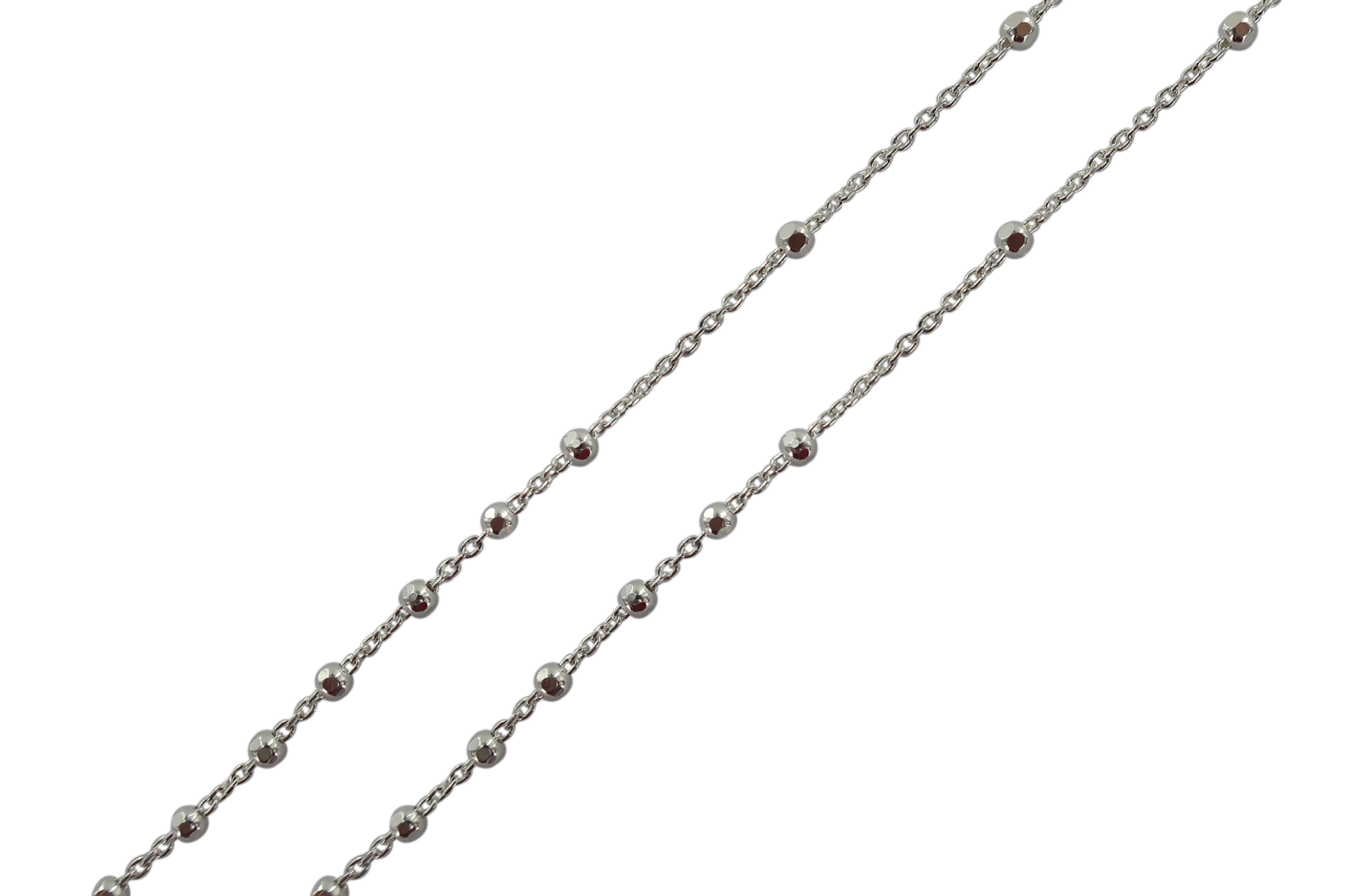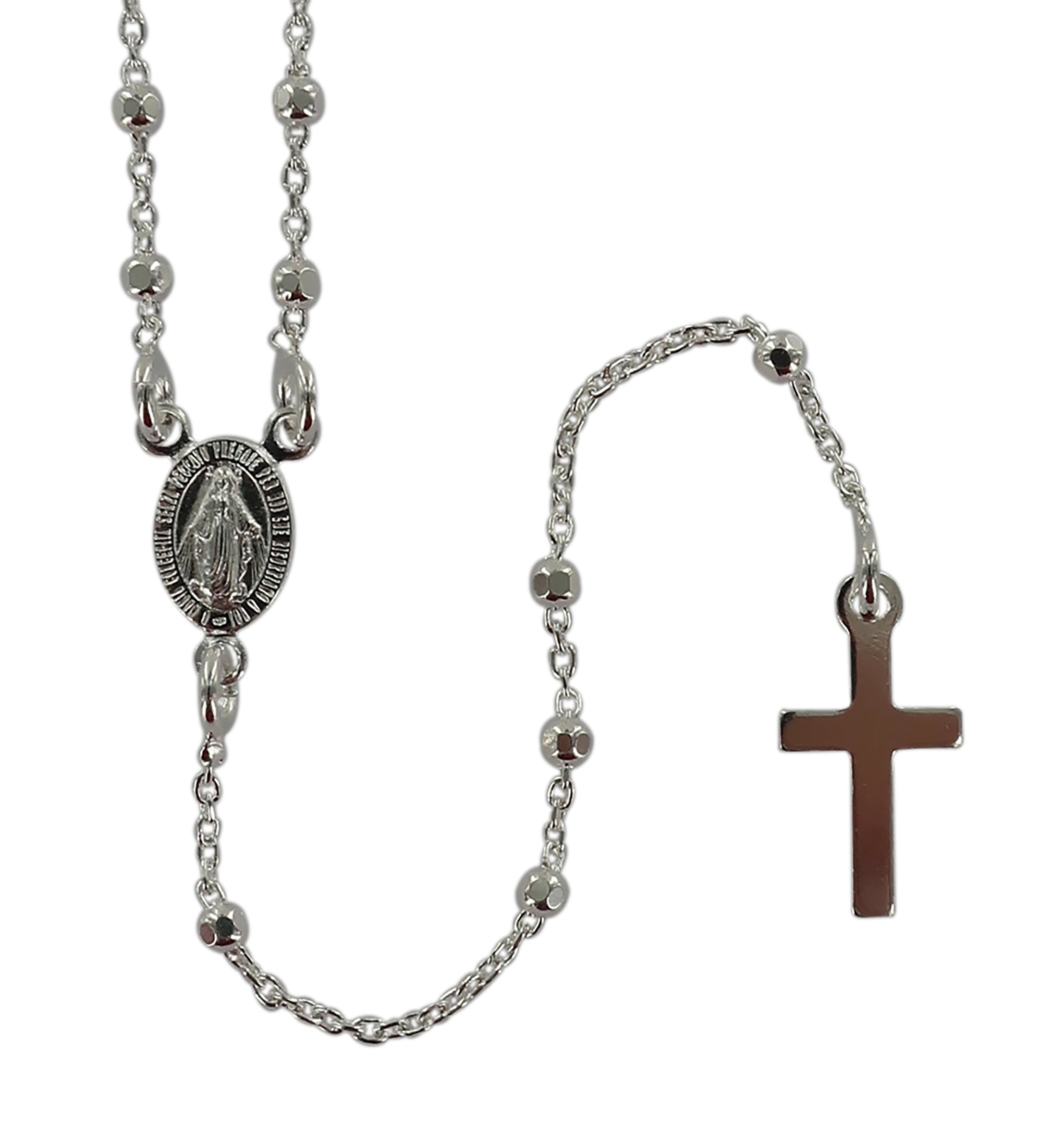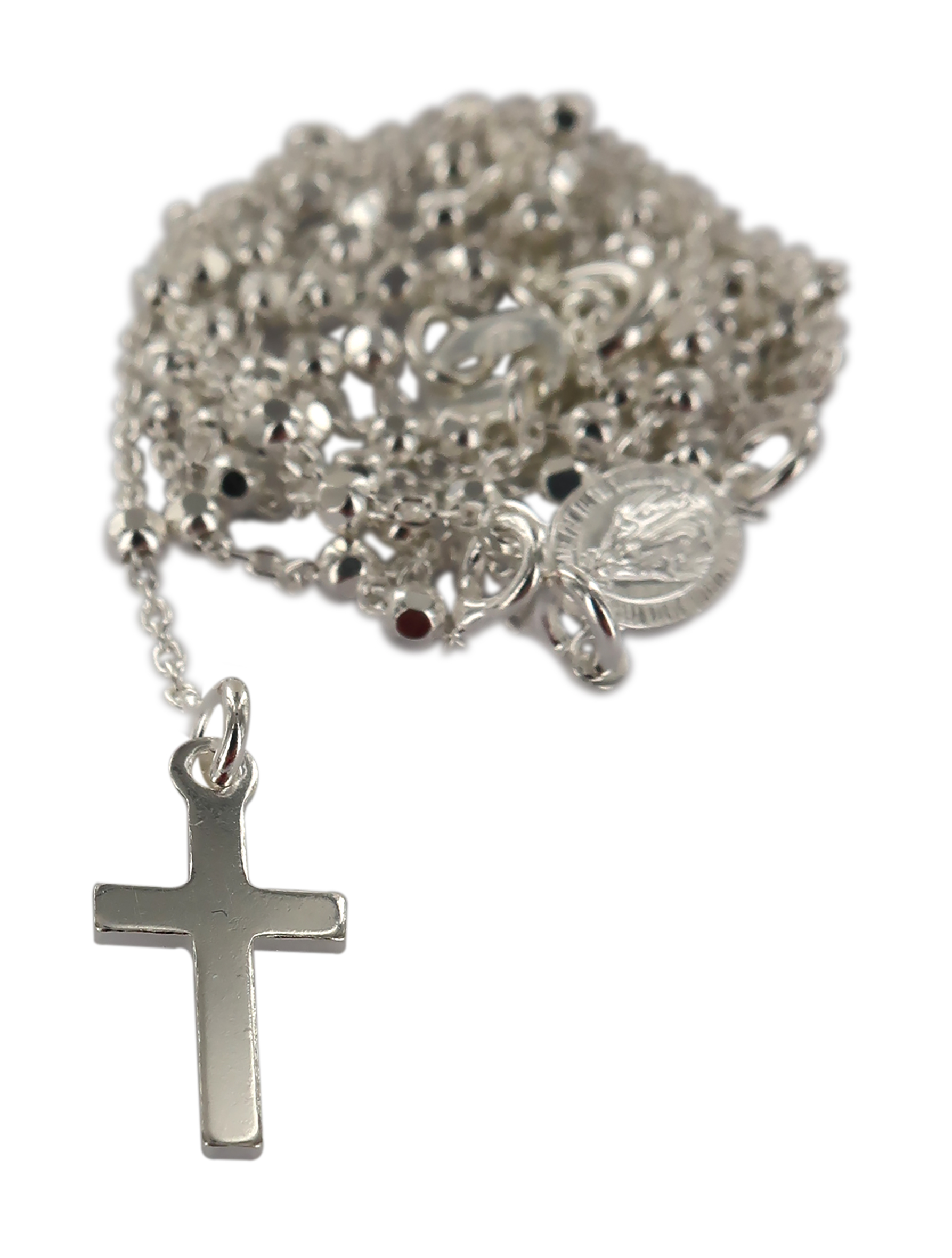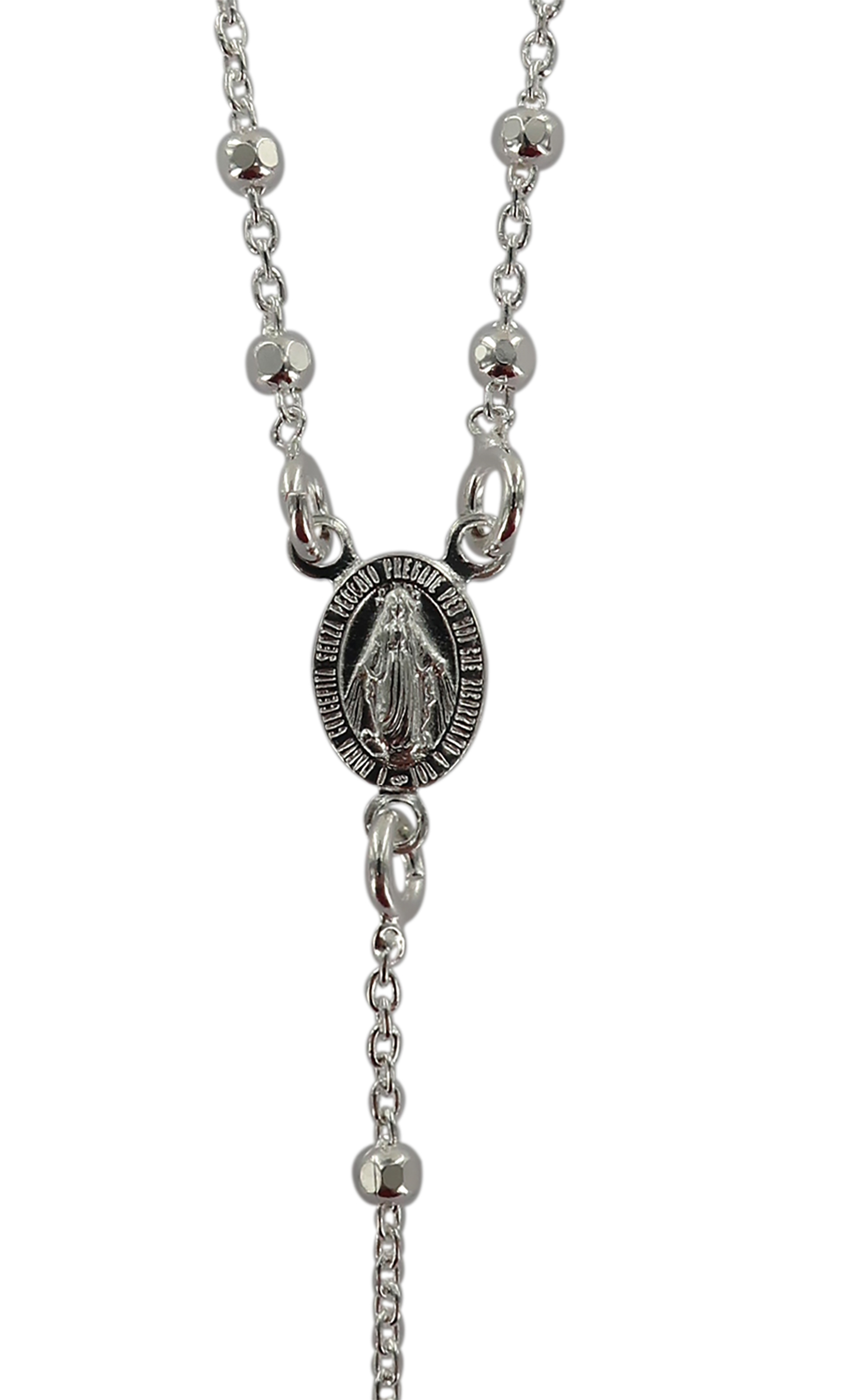 Il rosario ha i grani tondi sfaccettati da 2 mm bloccati sulla catena.