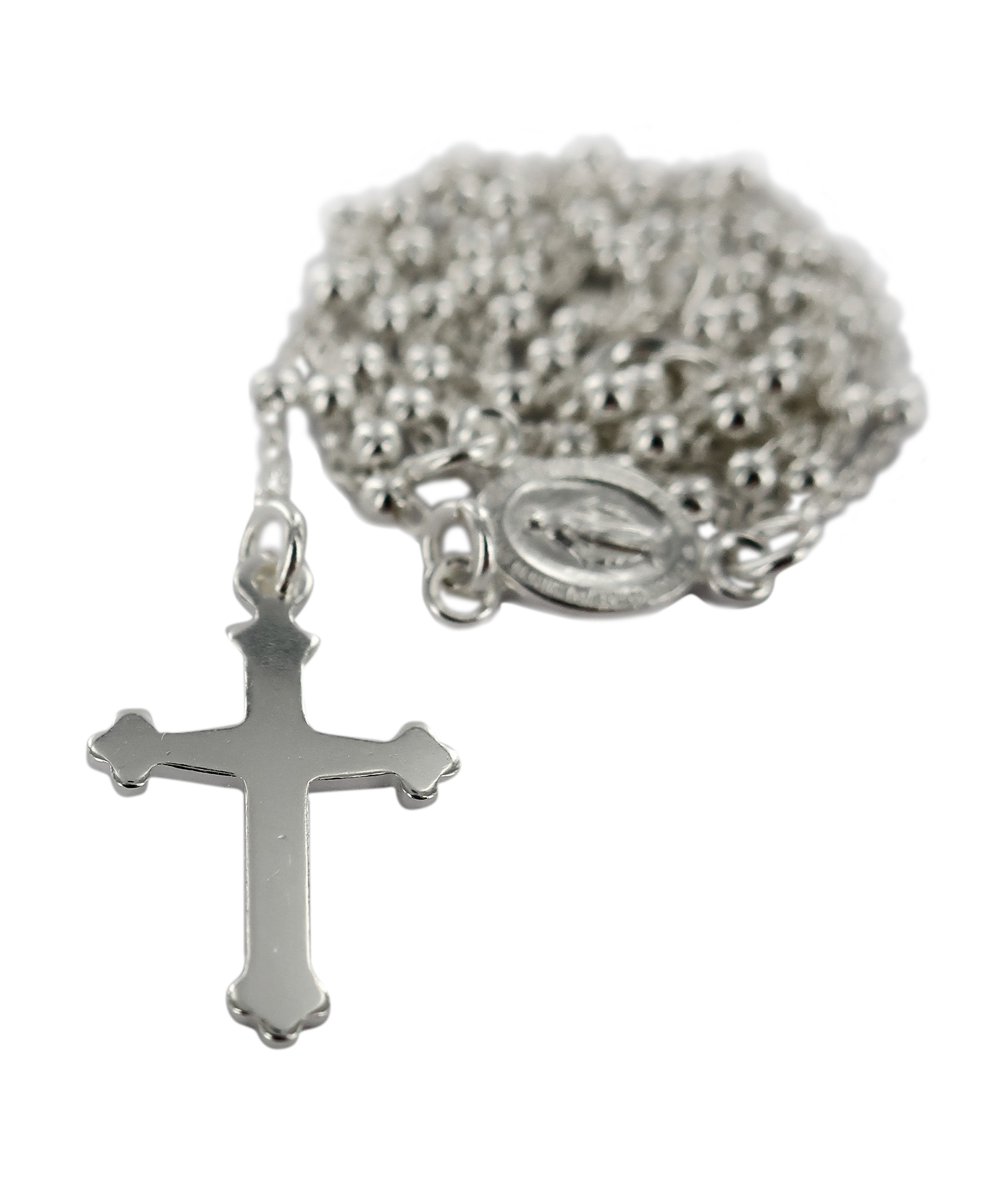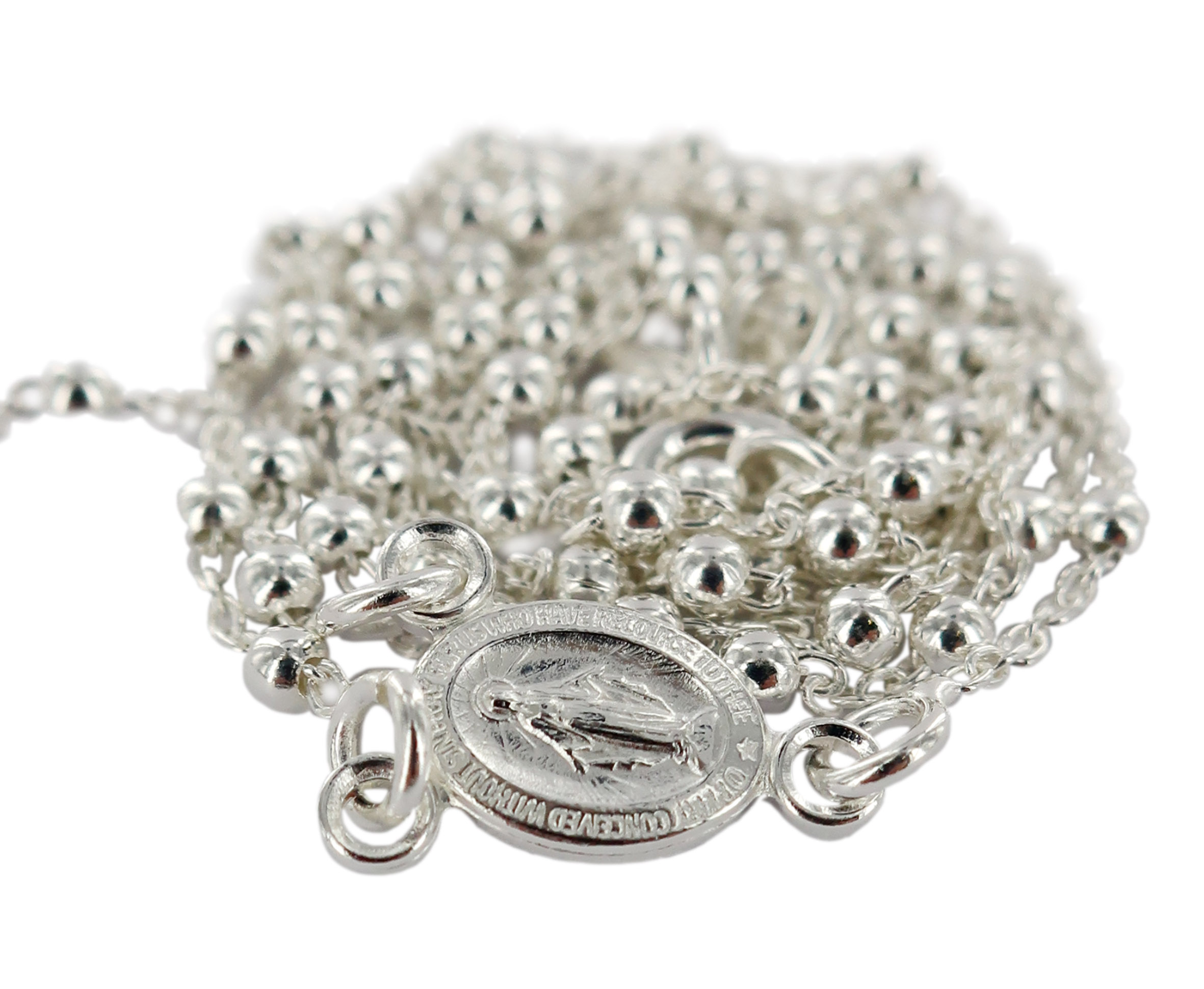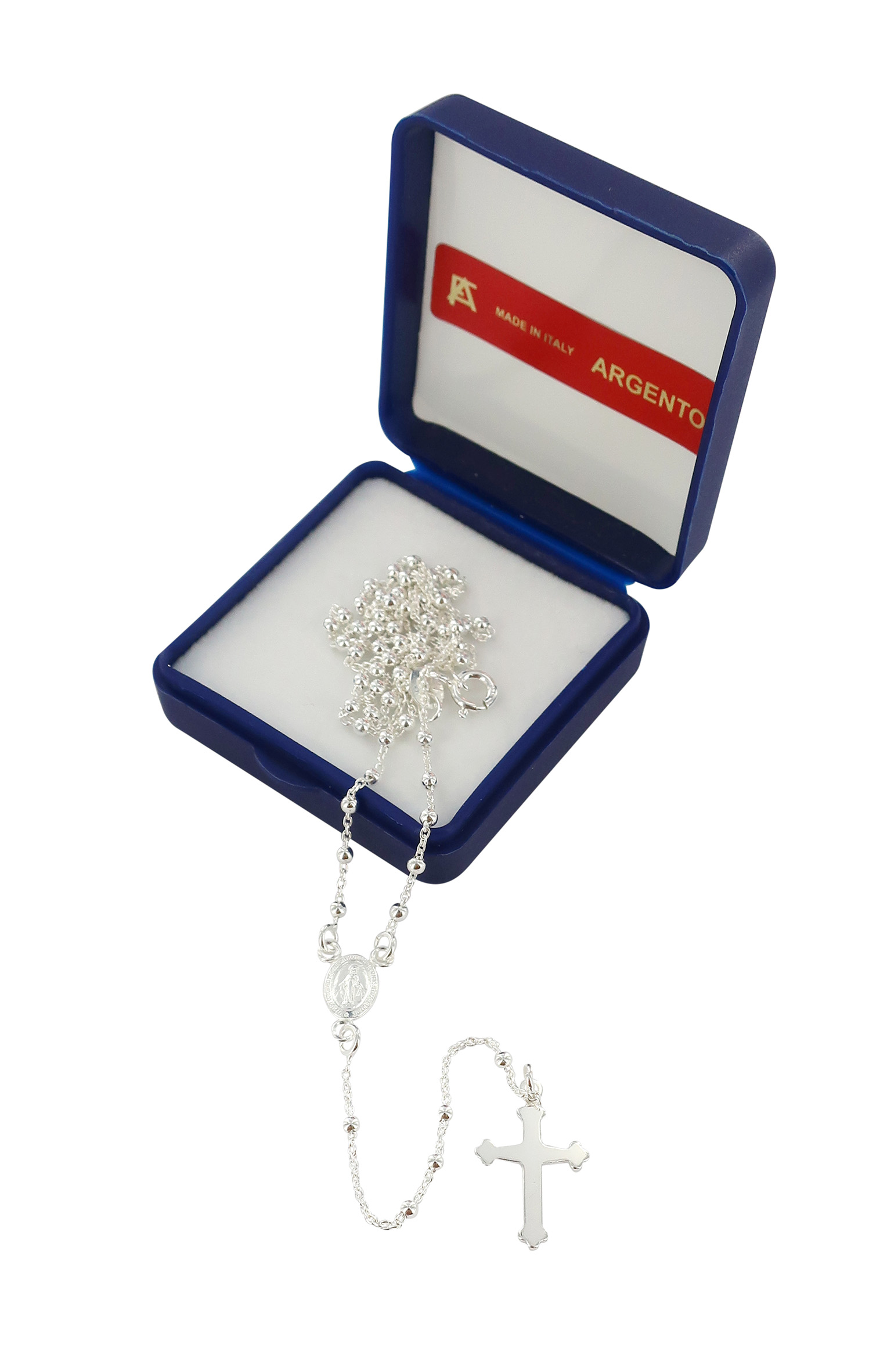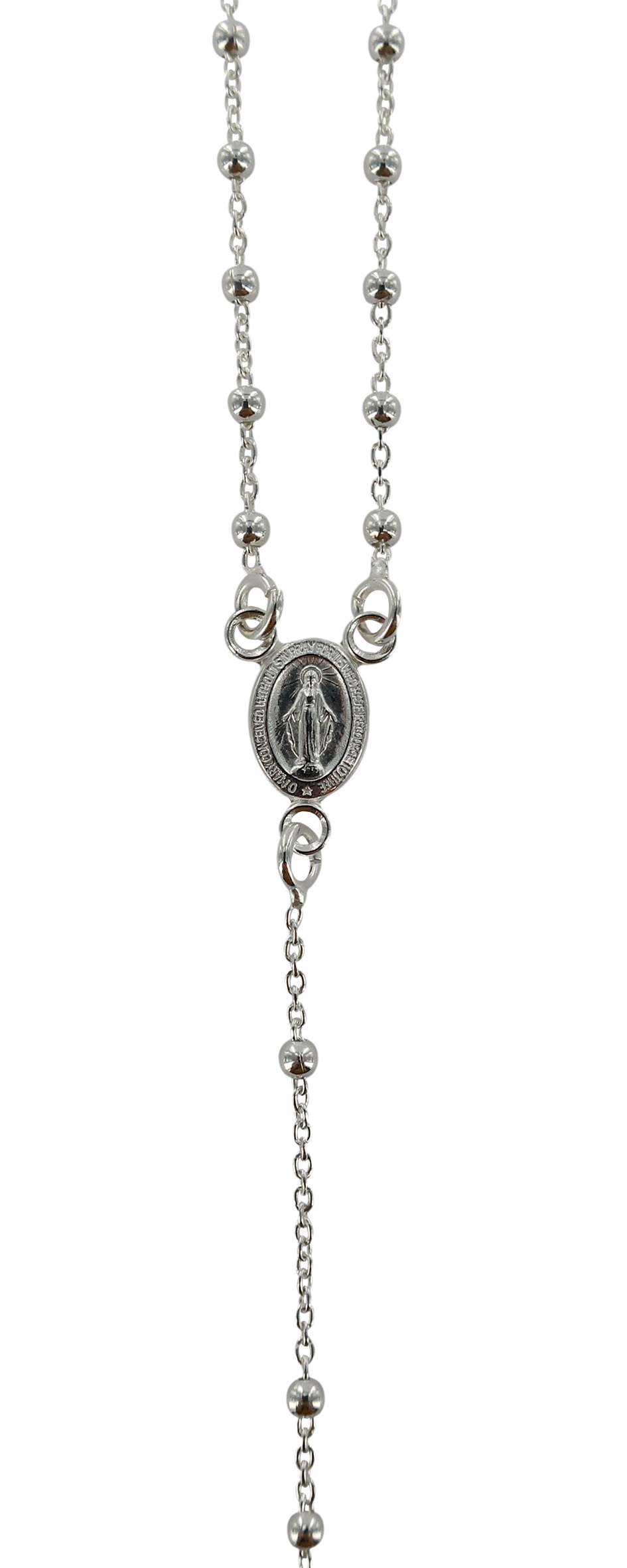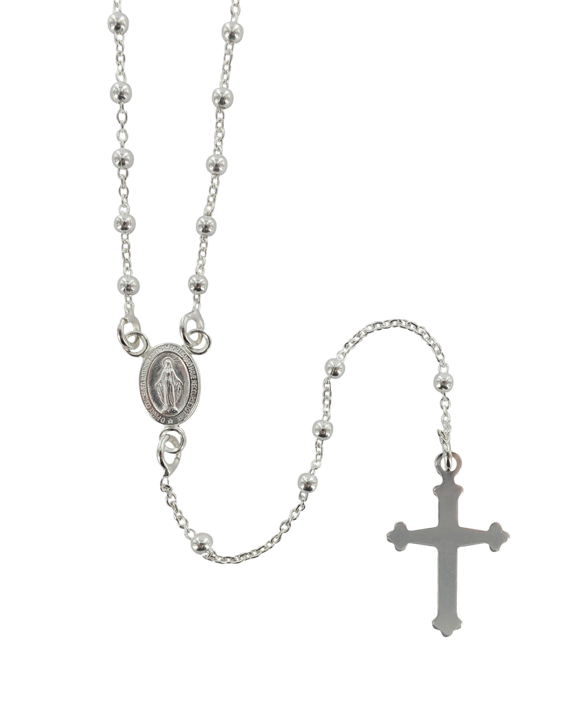 Rosario in argento 925 con grani tondi da Ø 1,5 mm sulla catena e con moschettone