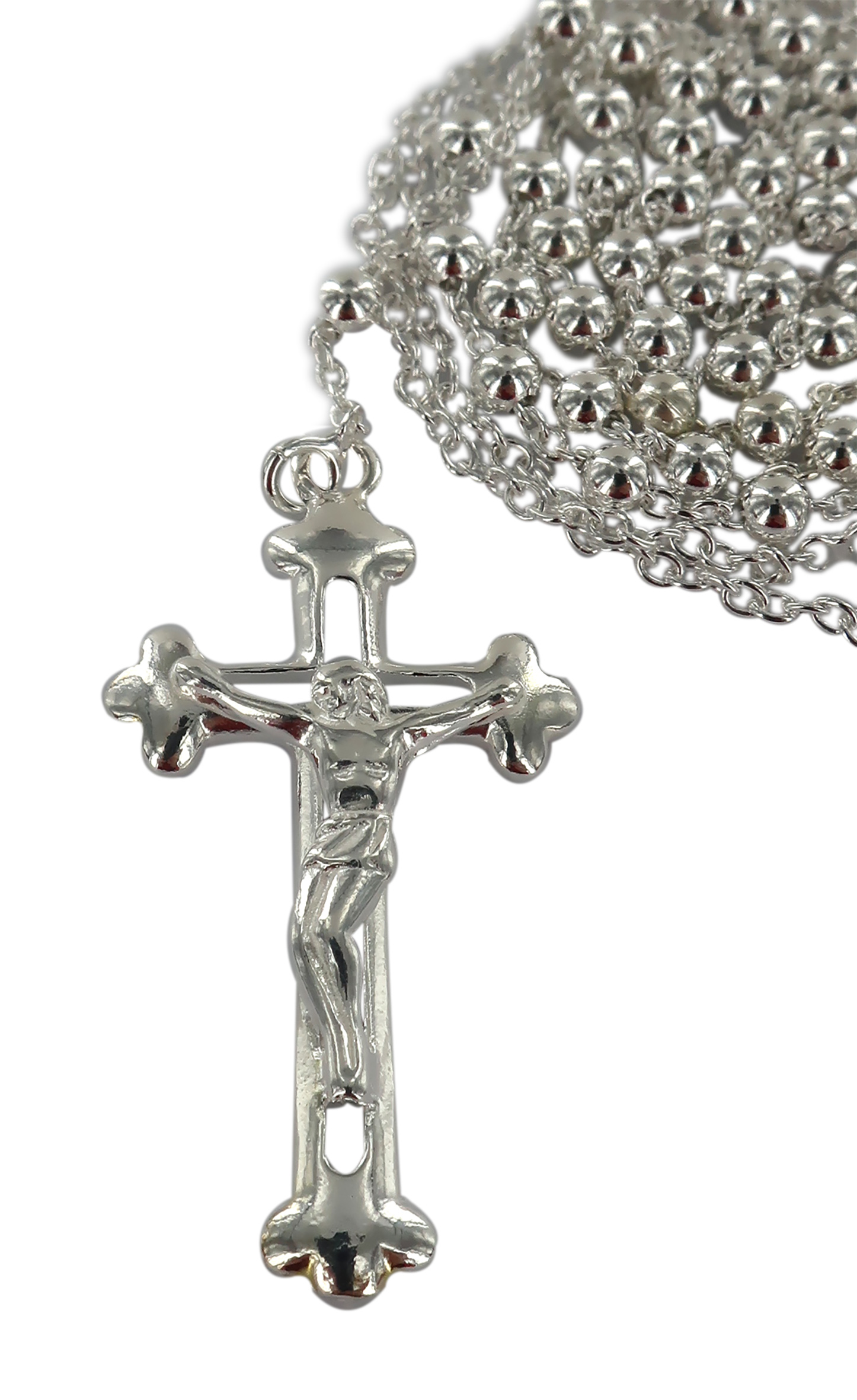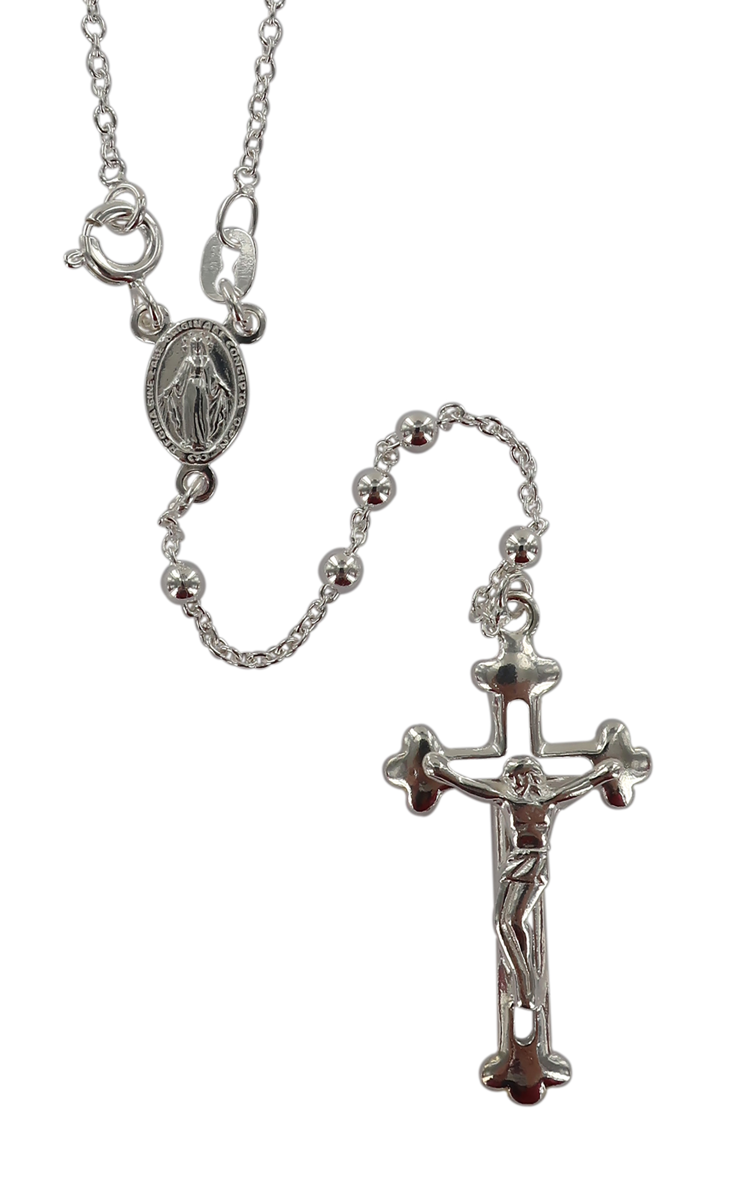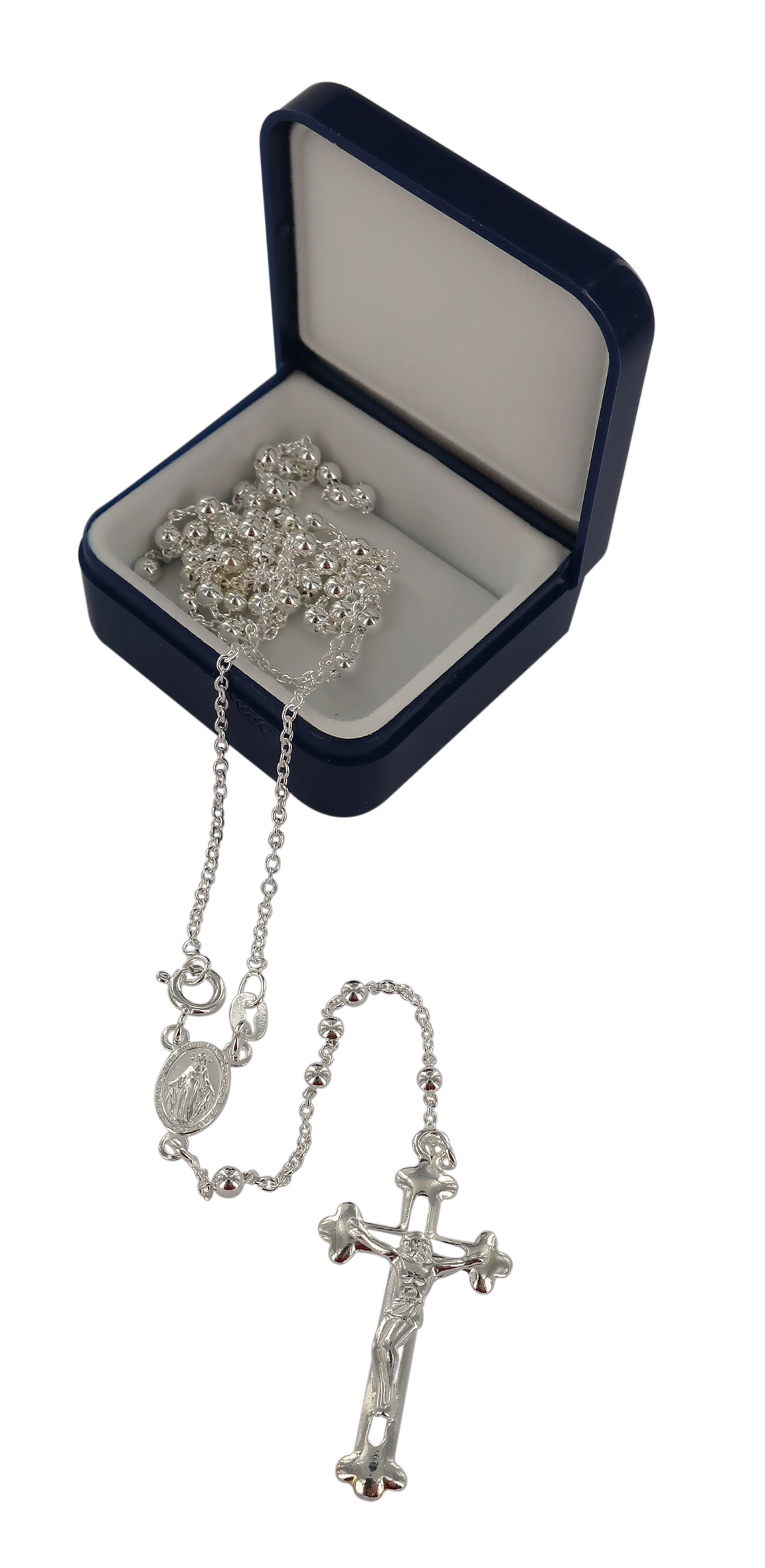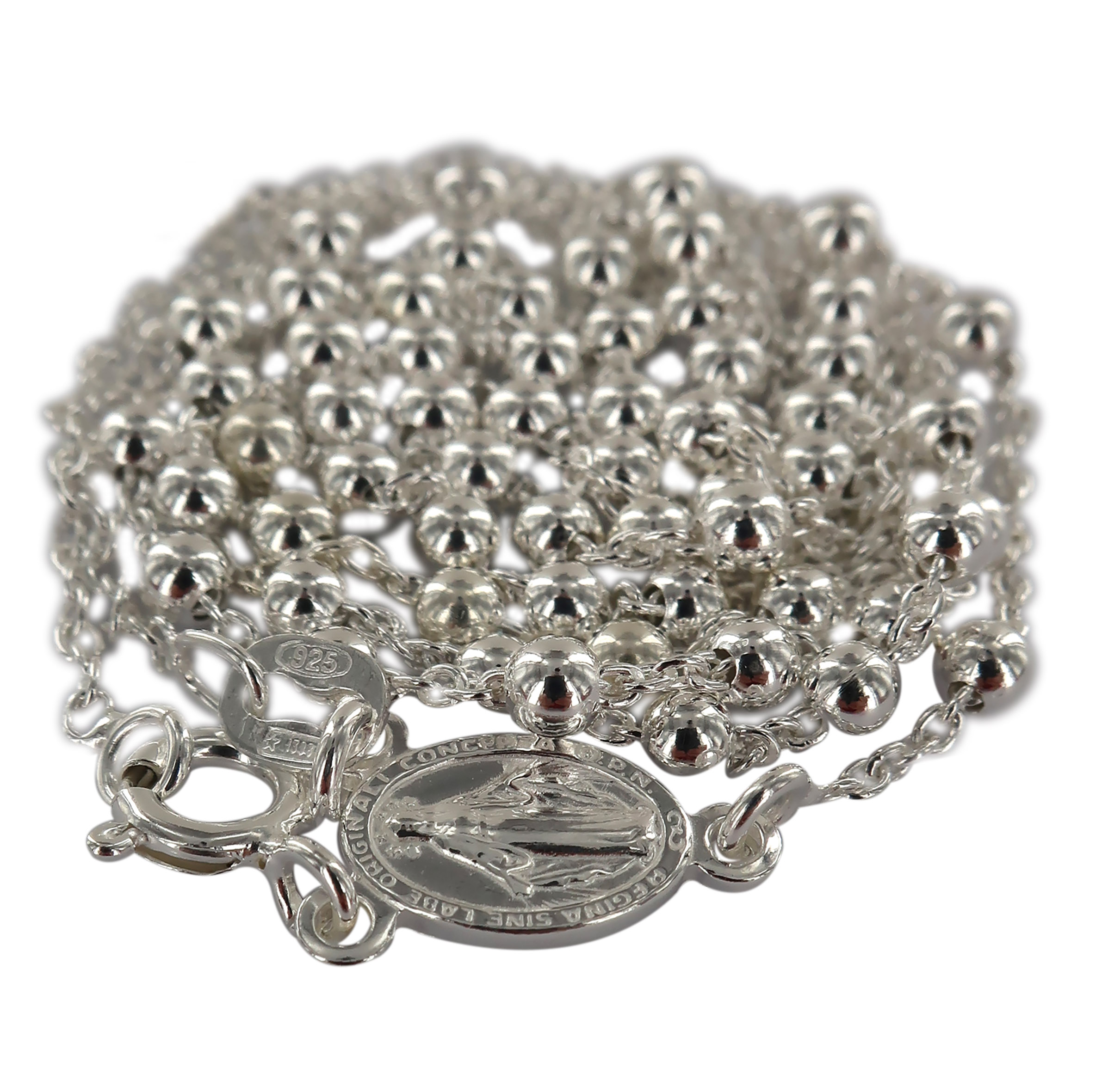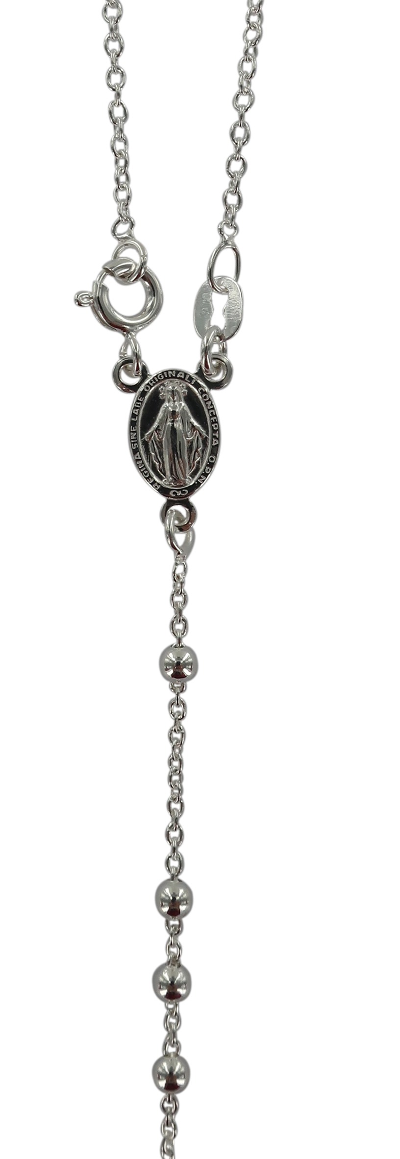 Rosario in argento 925 con grani tondi da Ø 3 mm con moschettone