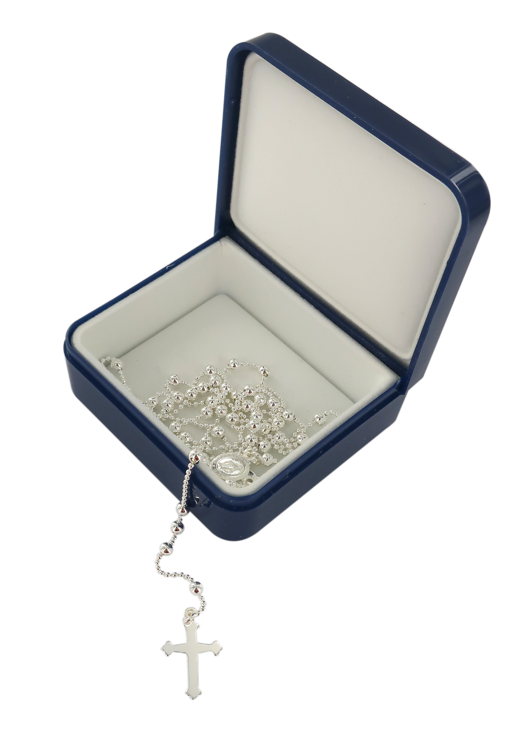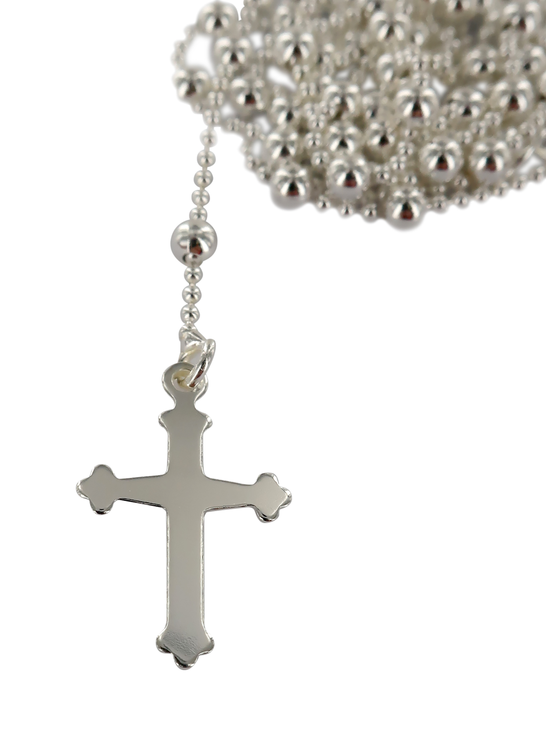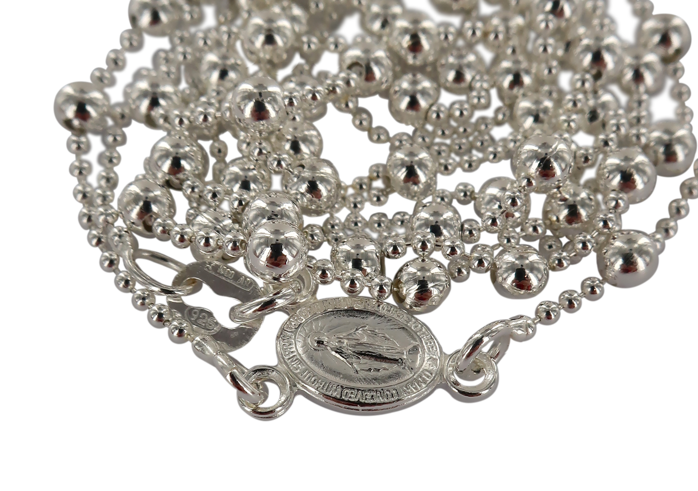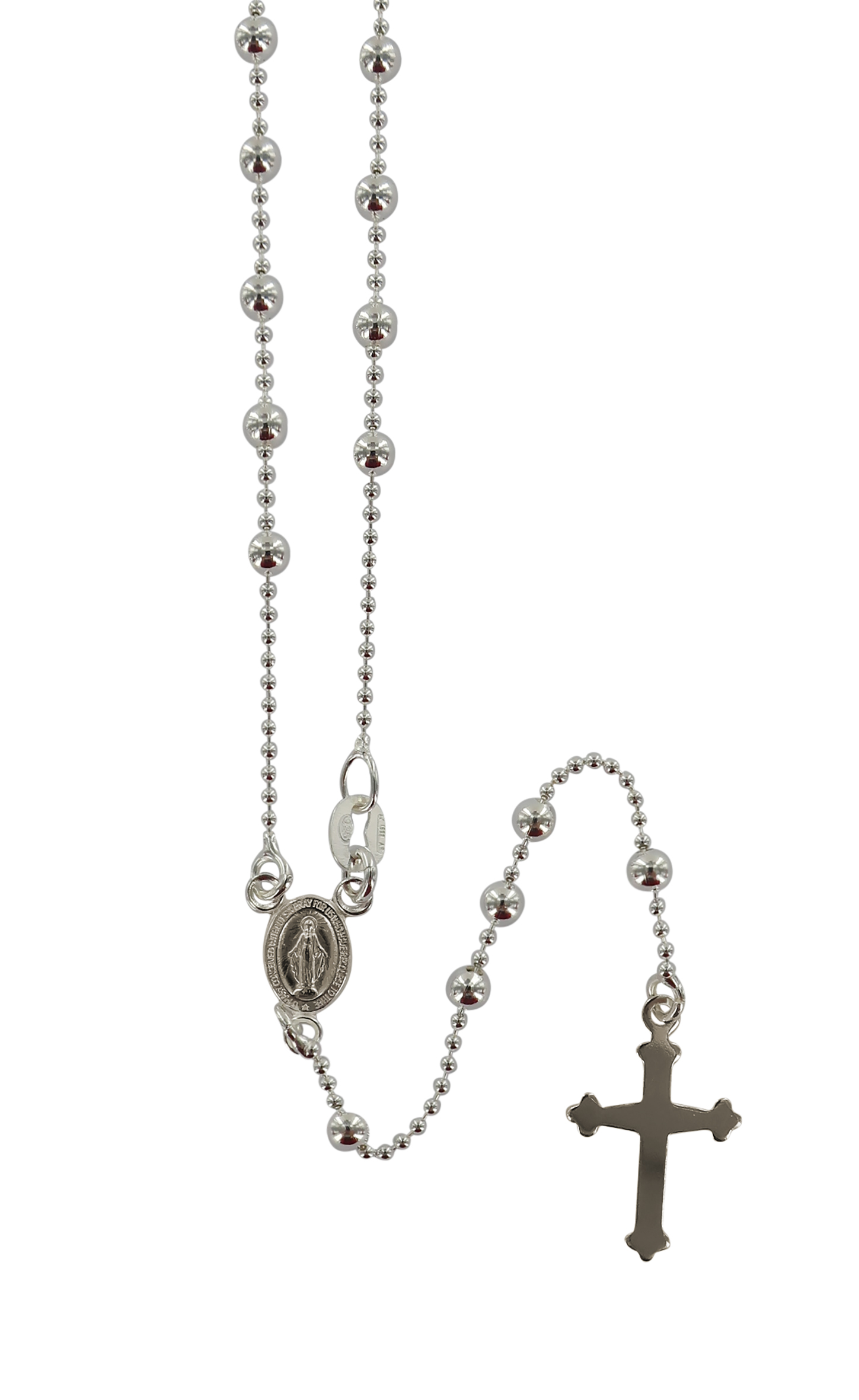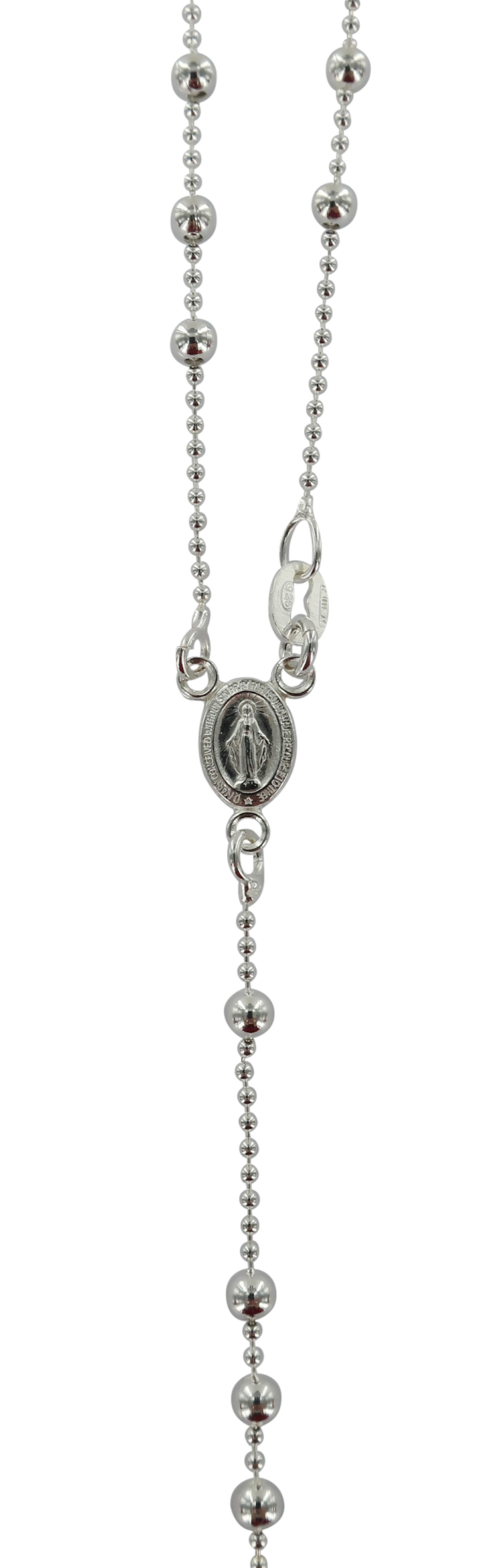Rosario in argento 925 con grani tondi da Ø 3 mm su catena a pallini