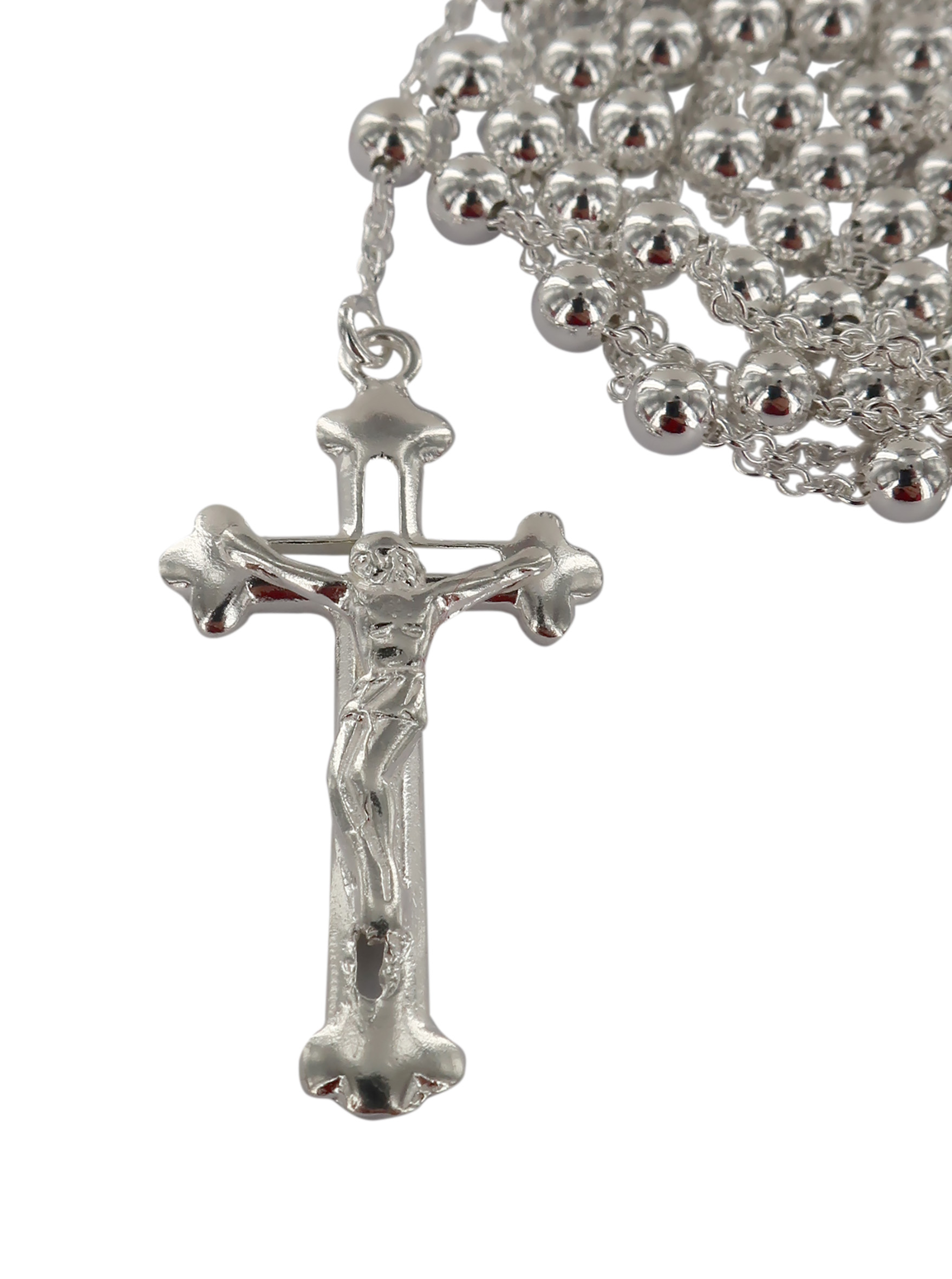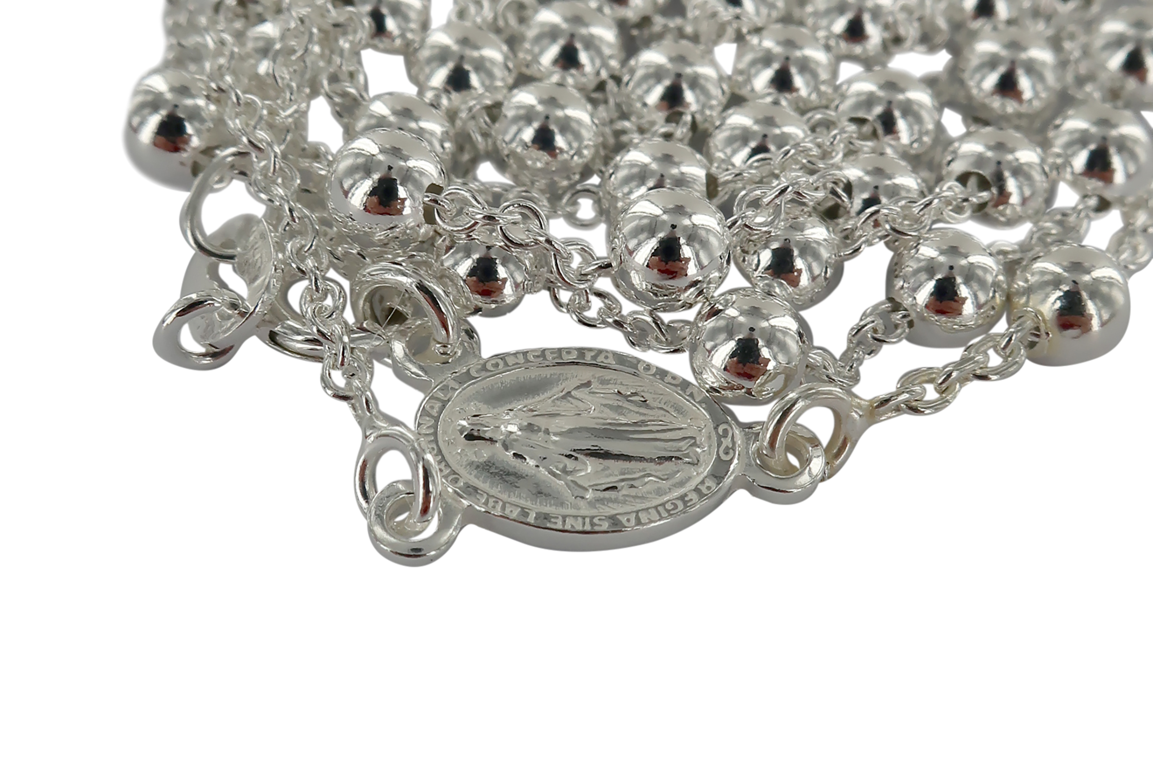 Il rosario è rilegato a mano in argento 925, con grani di 4 mm.