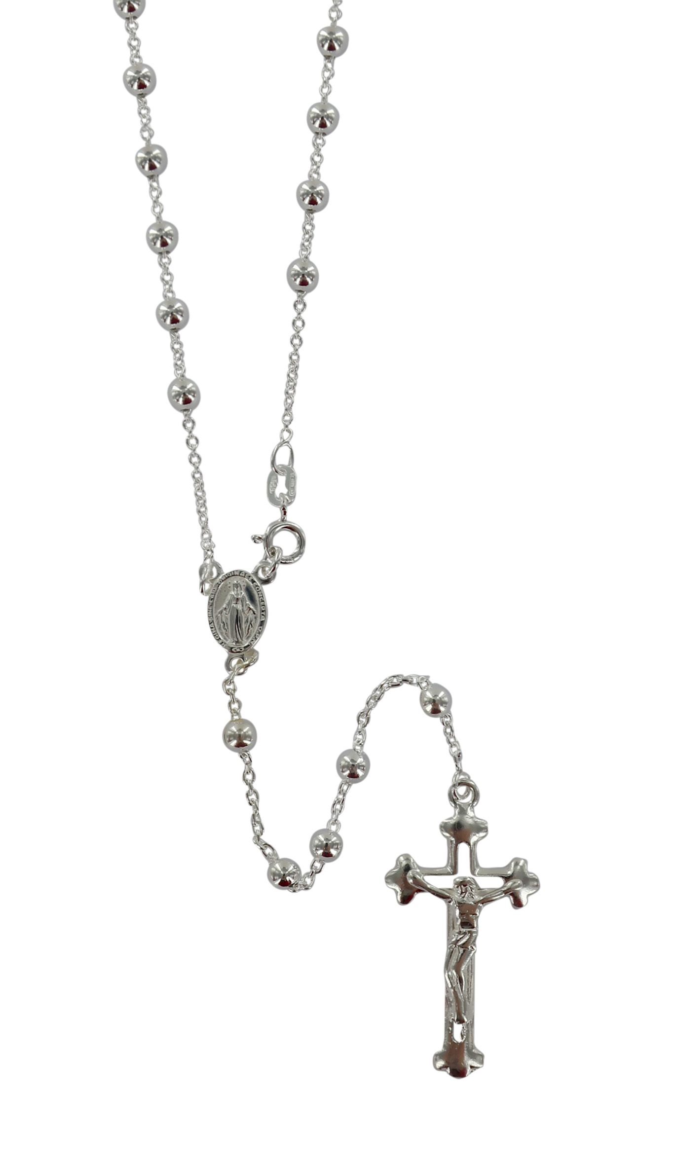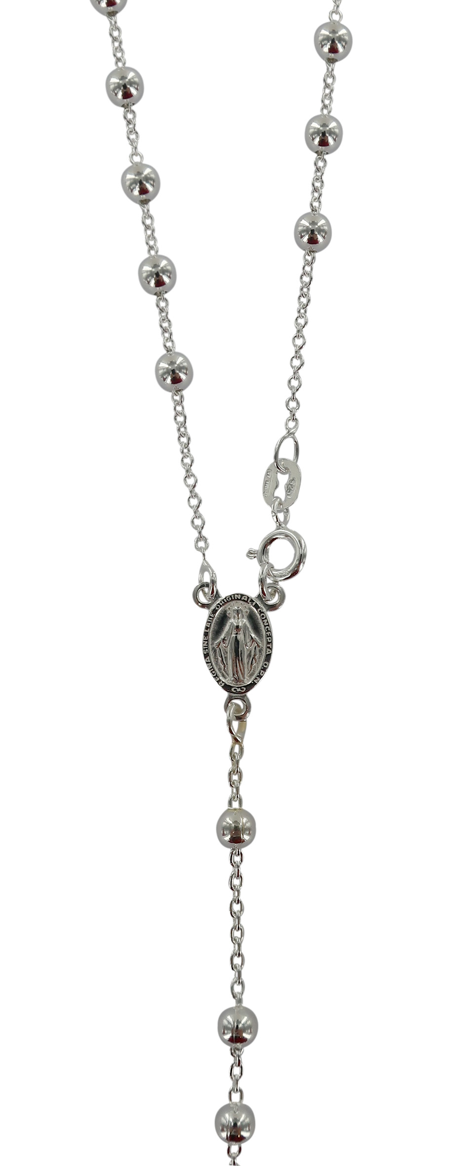 Rosario in argento 925 con grani tondi da Ø 4 mm con moschettone
