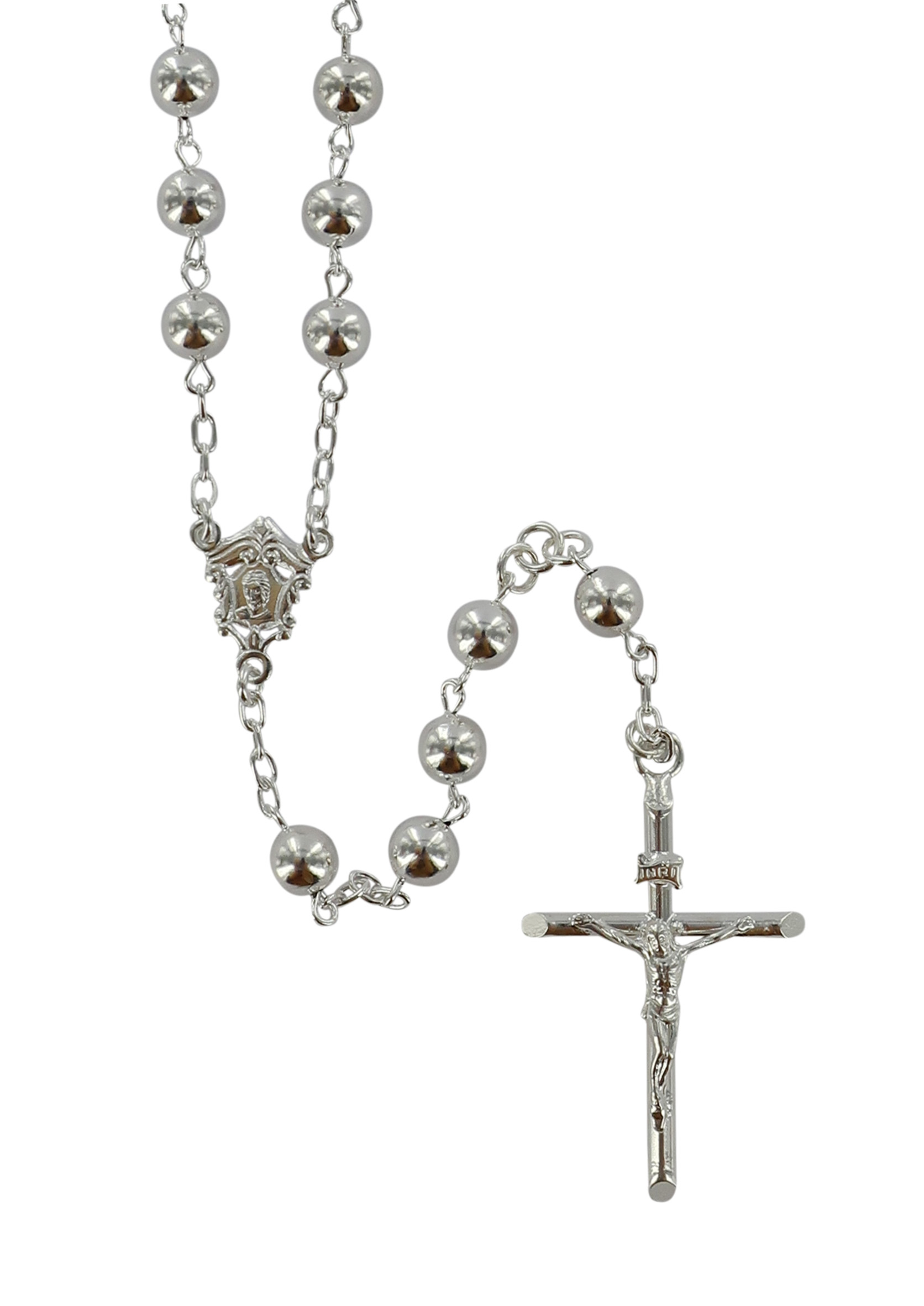 Rosario in argento 925 con grani tondi da Ø 5 mm