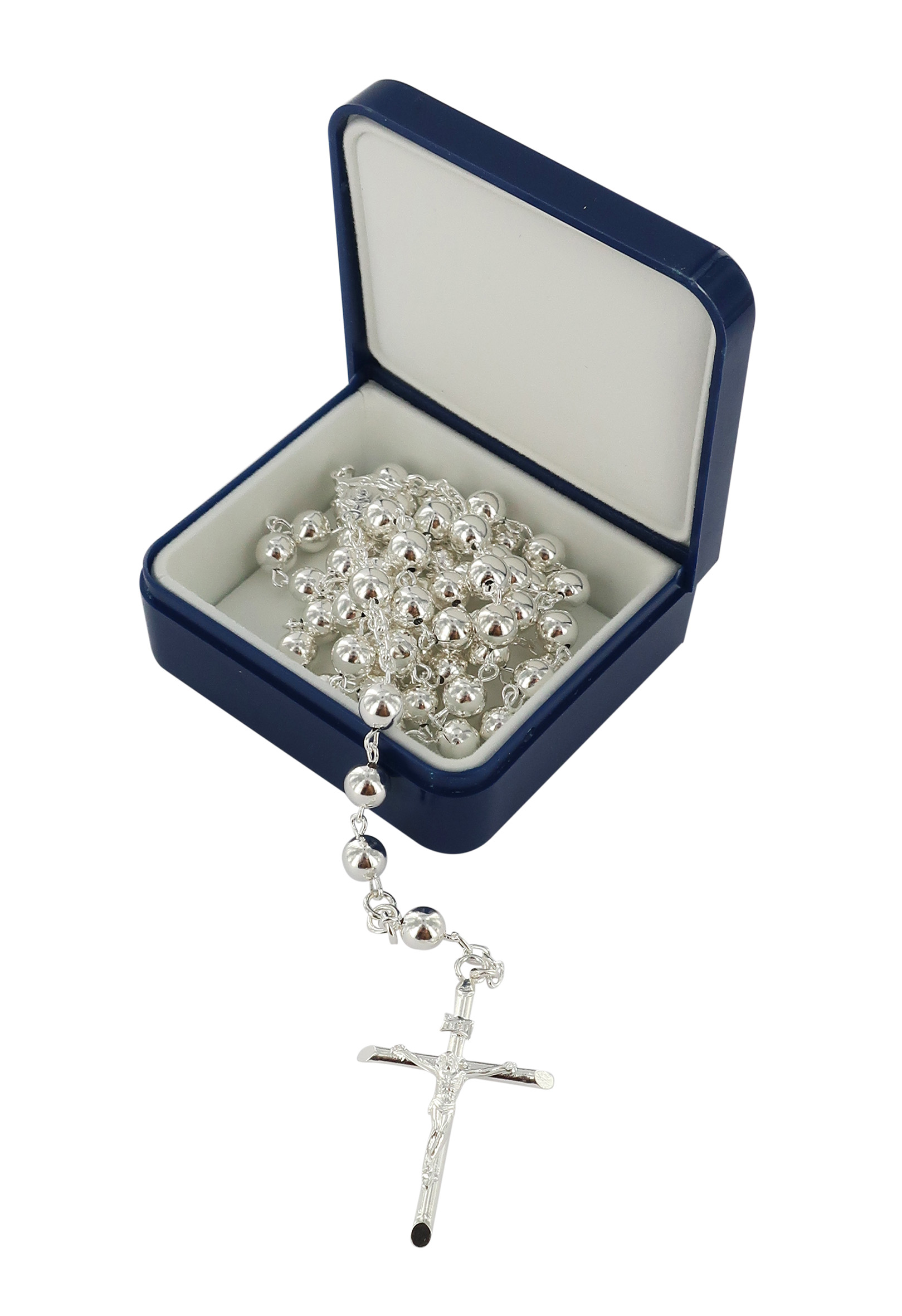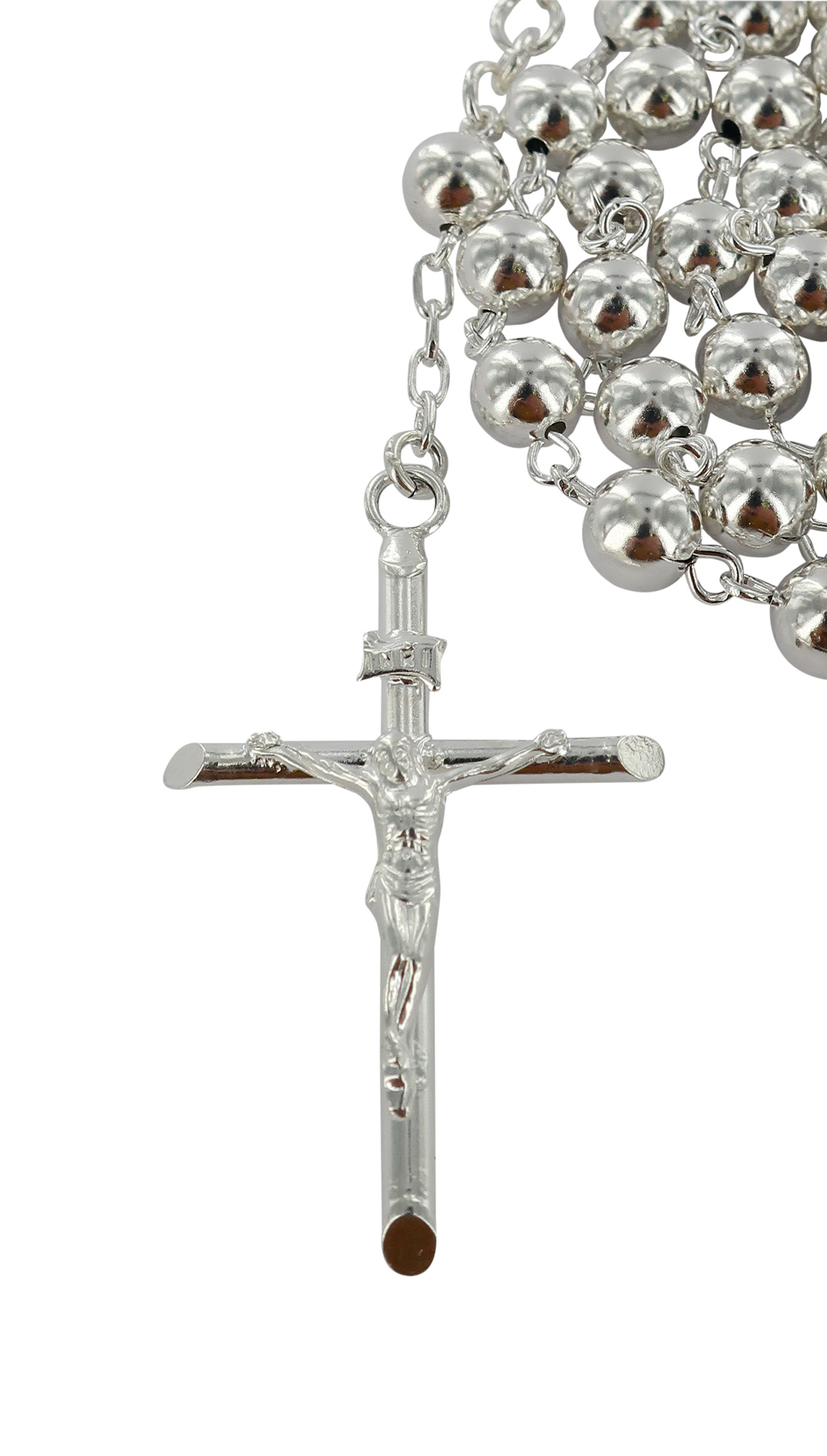 Rosario in argento 925 con grani tondi da Ø 6 mm