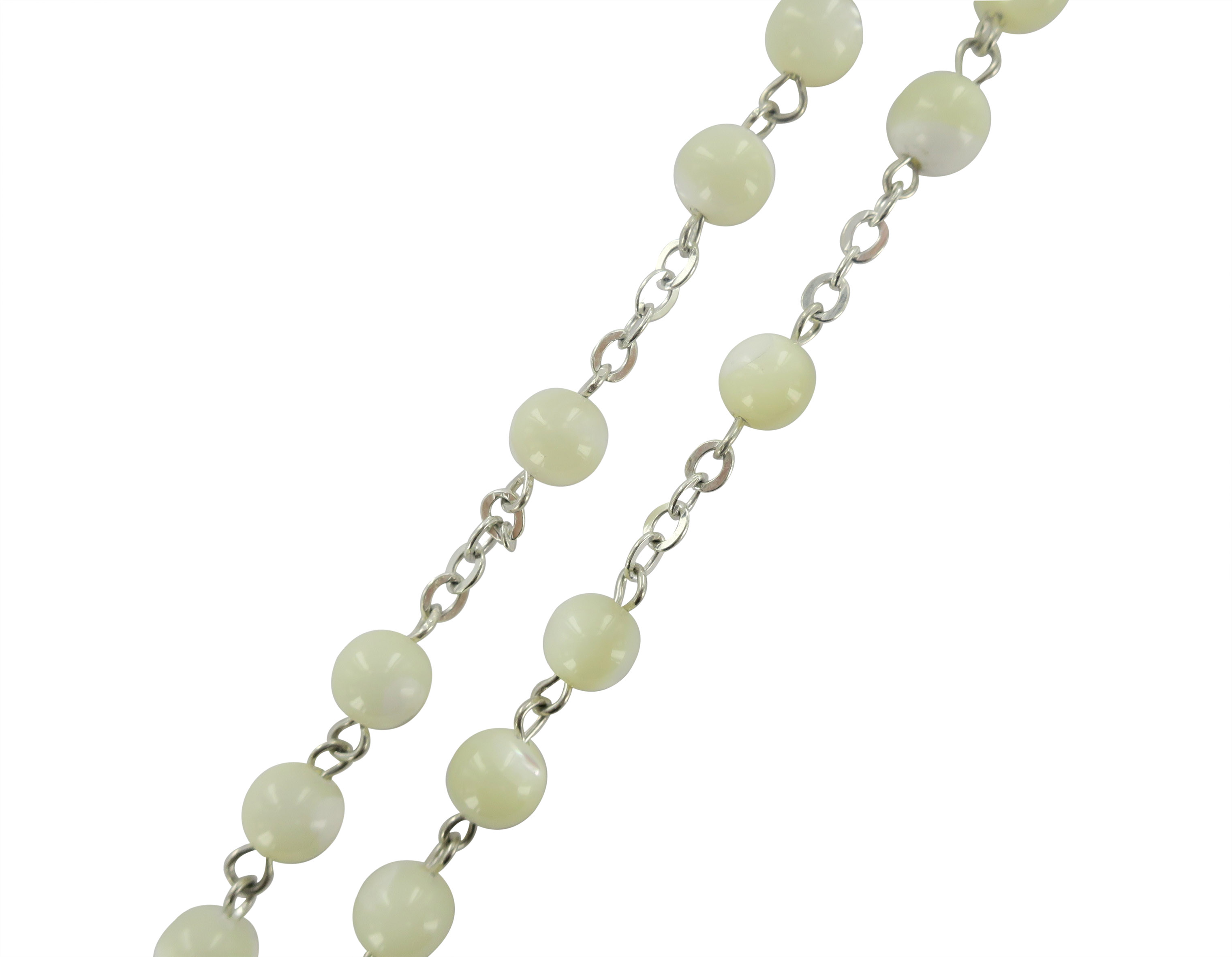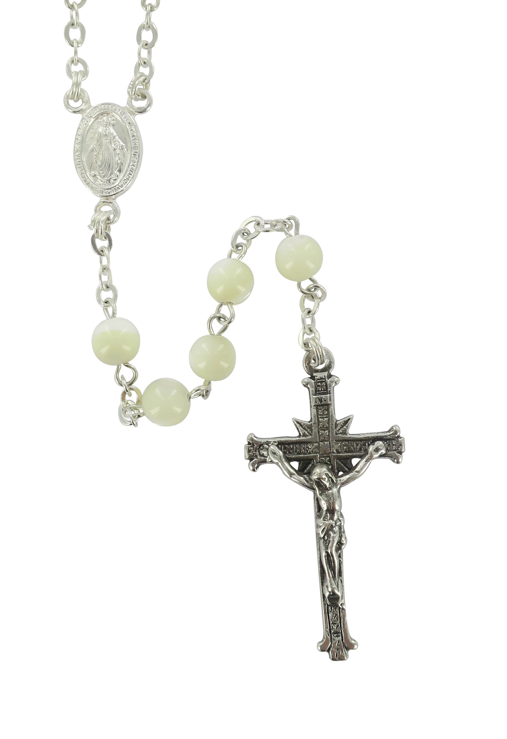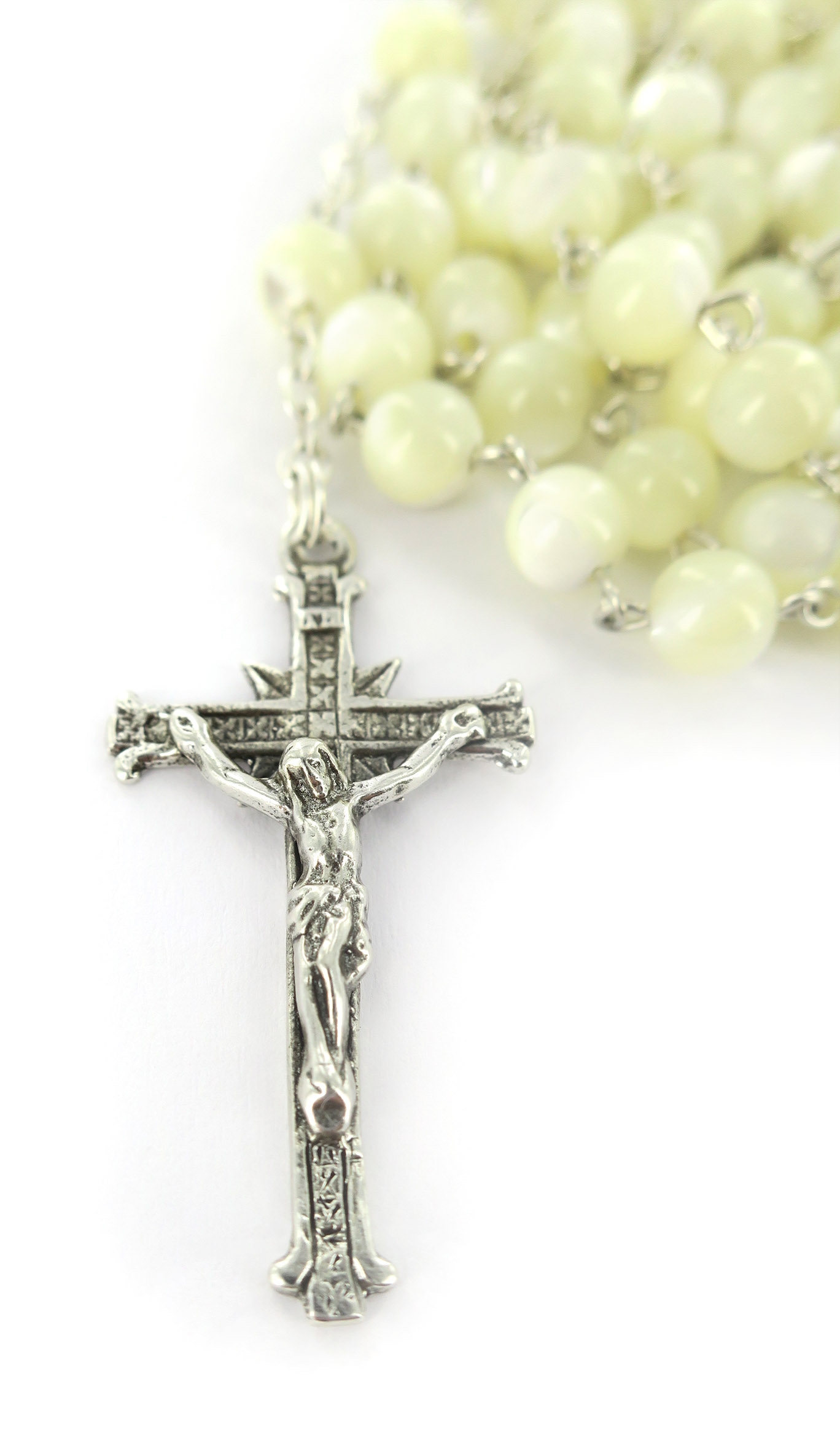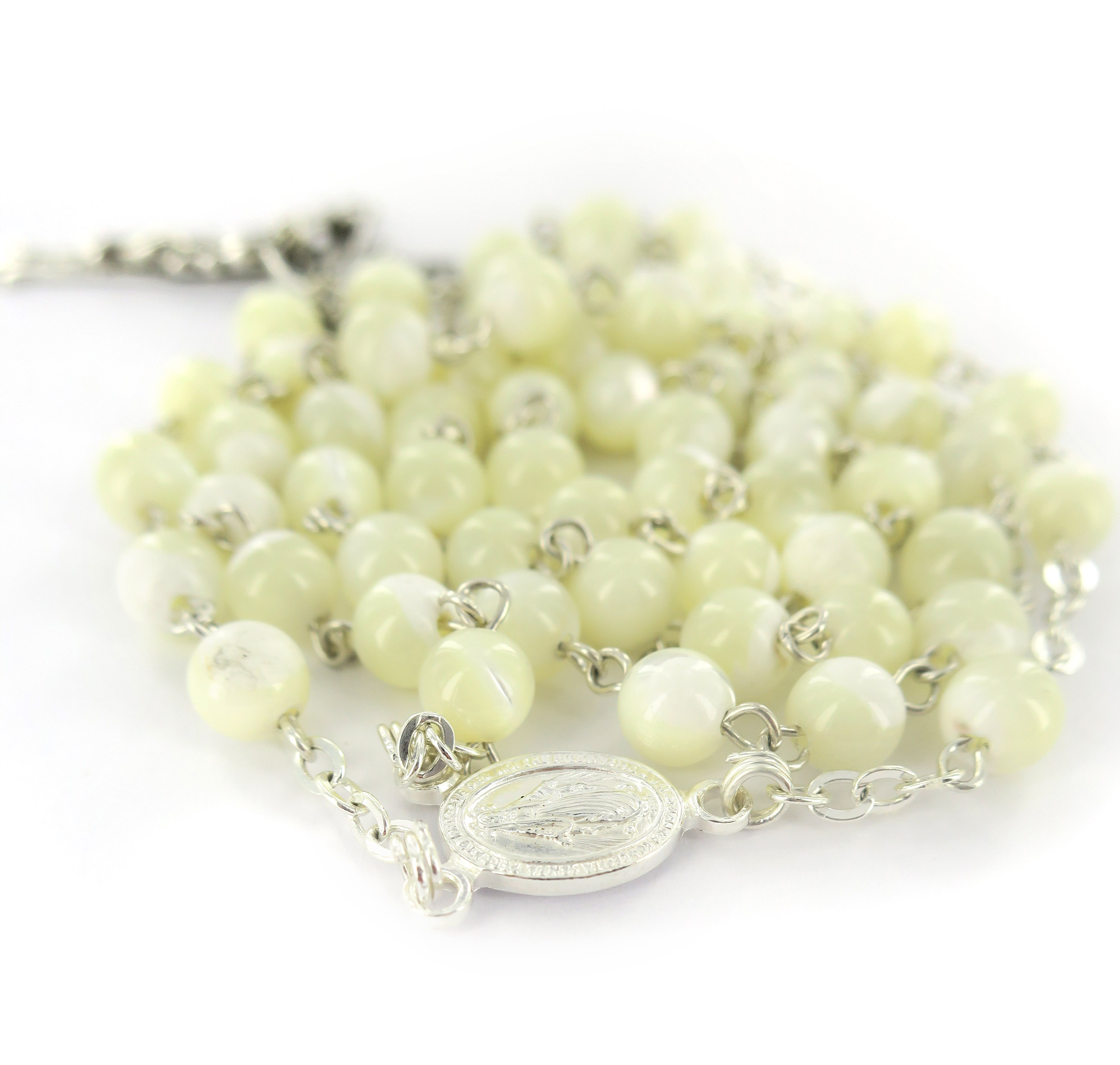 Rosario in argento con grani tondi in vera madreperla da Ø 5 mm