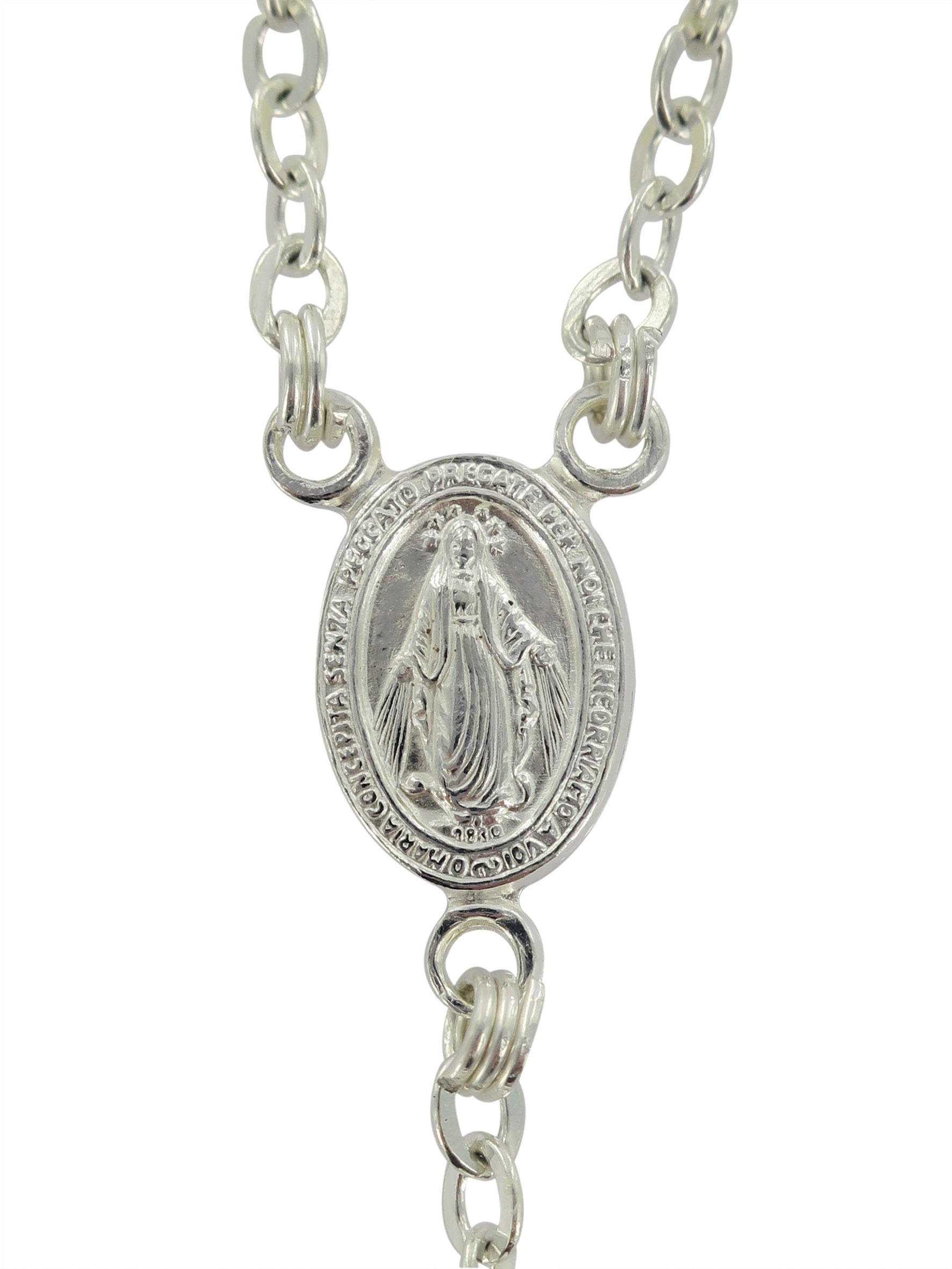 Rosario rilegato a mano in argento e grano tondo del diametro di 5 mm.