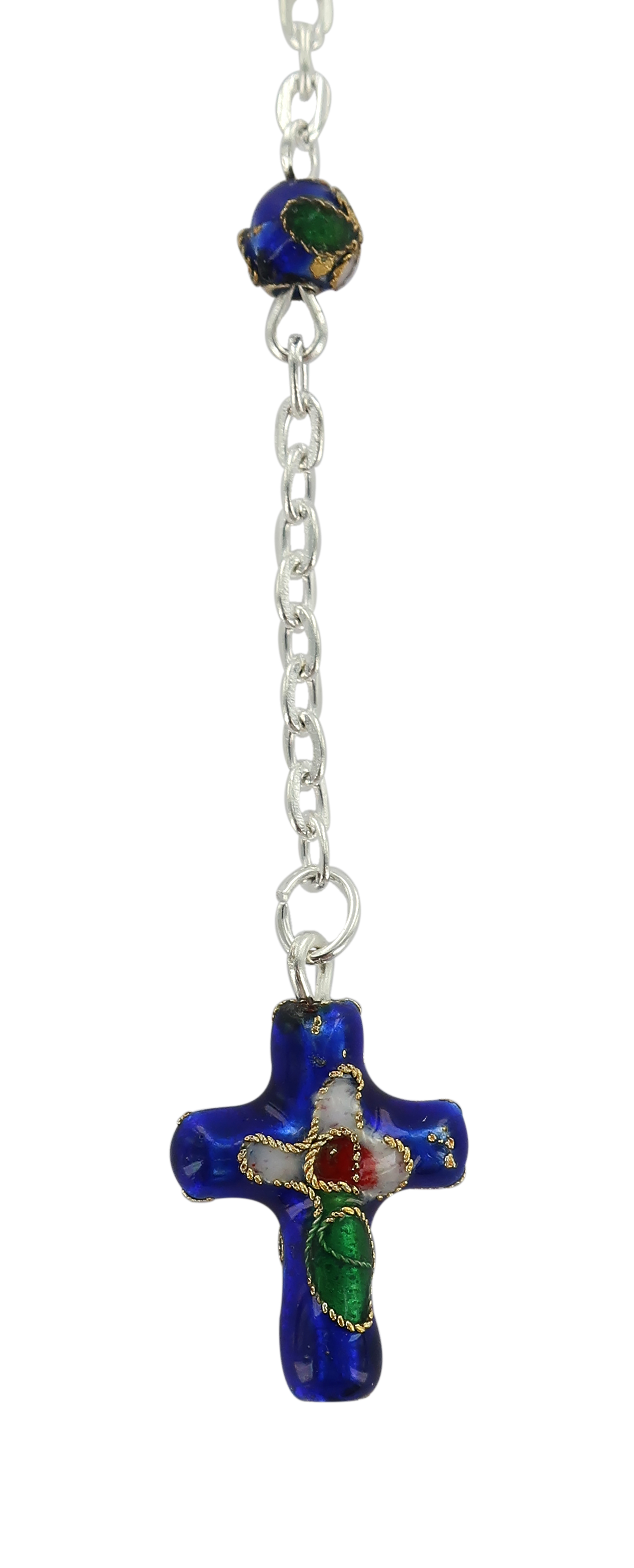Bracciale Rosario cloisonnè con 11 grani di diametro 5 mm e croce di altezza 2 cm con base di colore