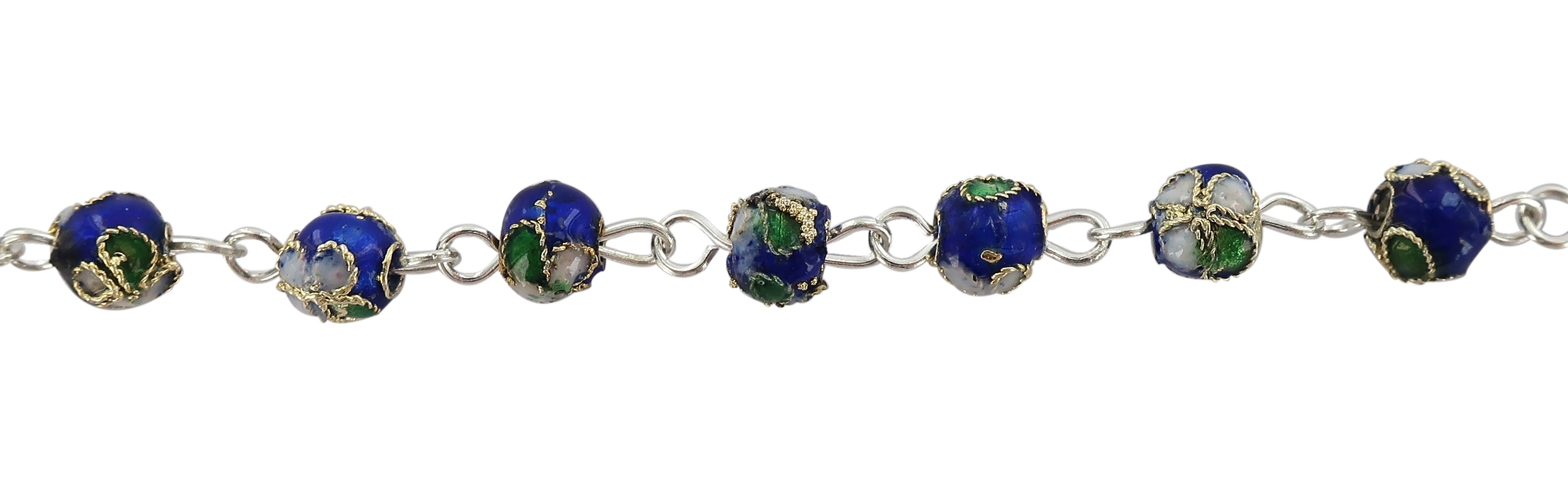 Braccialetto cloisonnè con 11 grani da Ø 5 mm e croce - blu